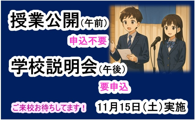 10月、11月、12月の学校説明会は全て同一内容で実施します