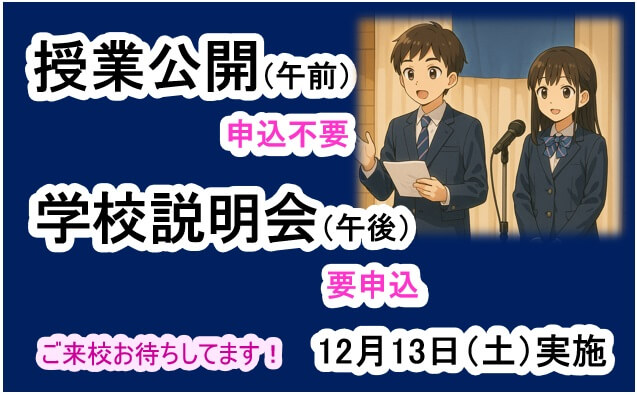 10月、11月、12月の学校説明会は全て同一内容で実施します