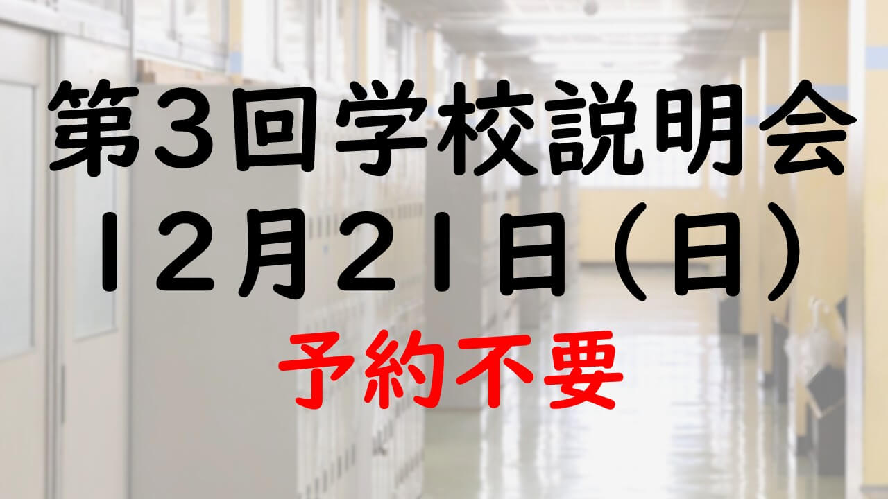 第3回学校説明会を12月21日に実施いたします。以下のリンクからご確認ください。