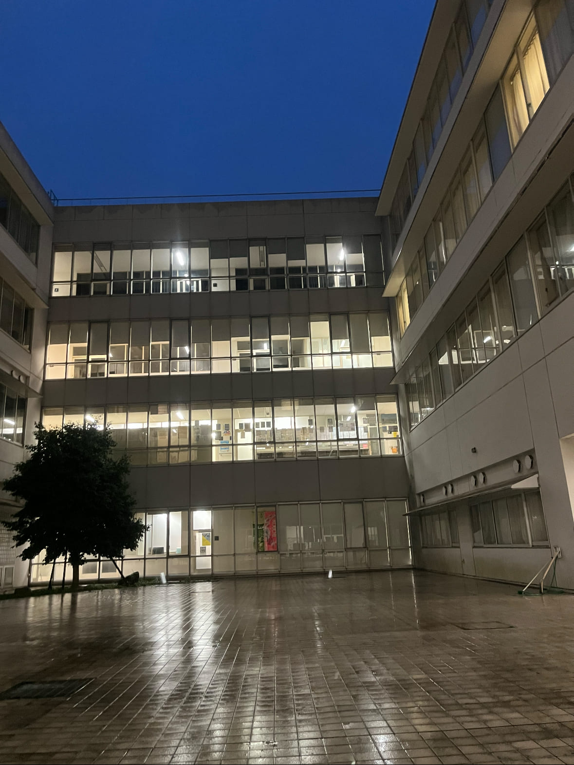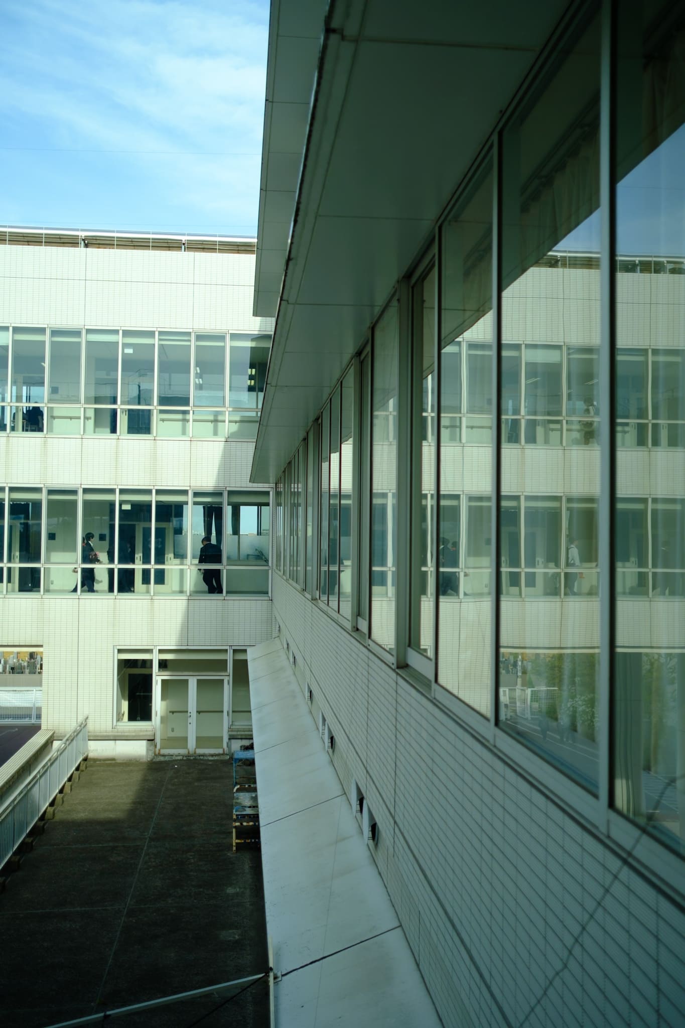 校舎が窓に反射していたので撮りました。