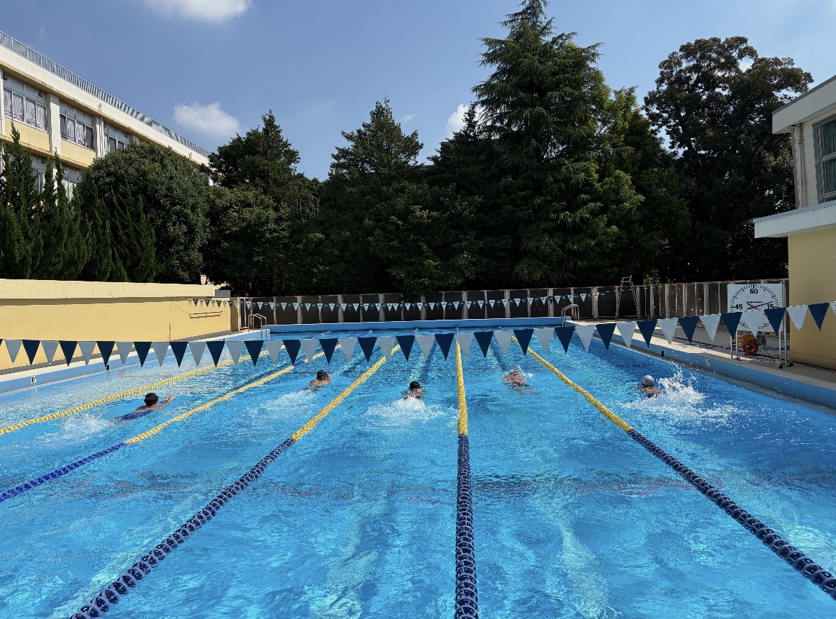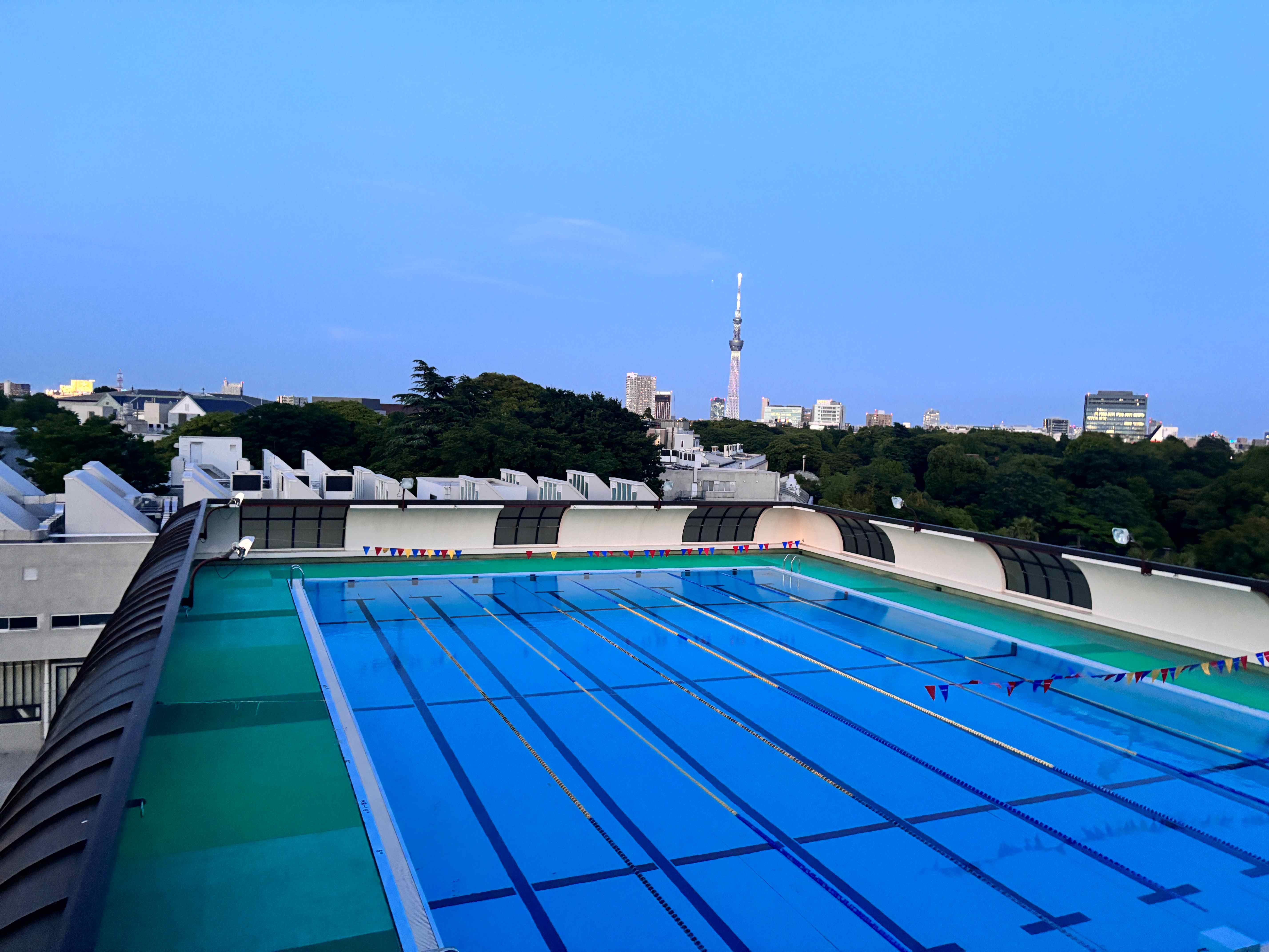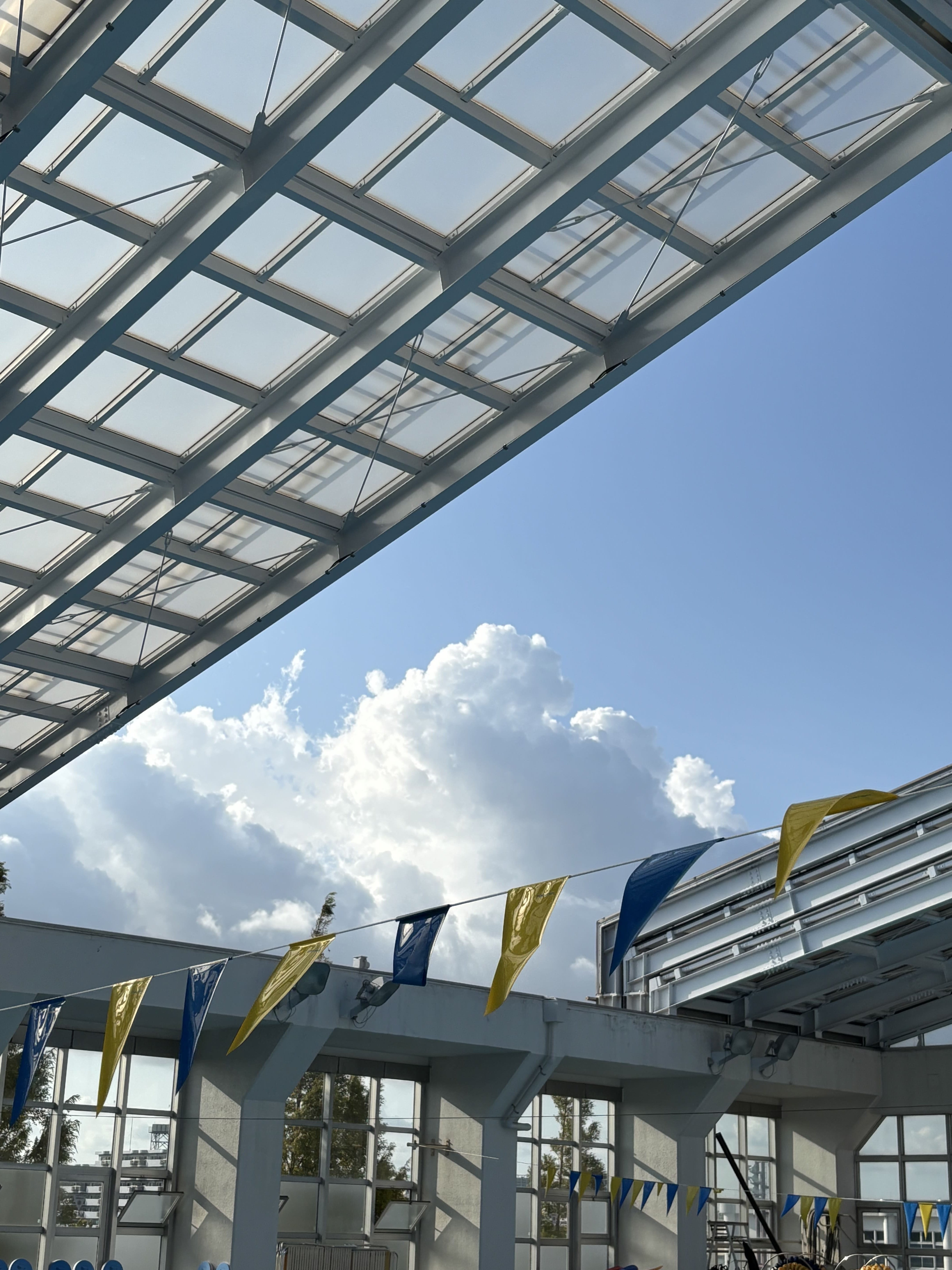 つばさ総合の特徴でもある開閉式天井のプールで、強い風が吹く日に撮りました