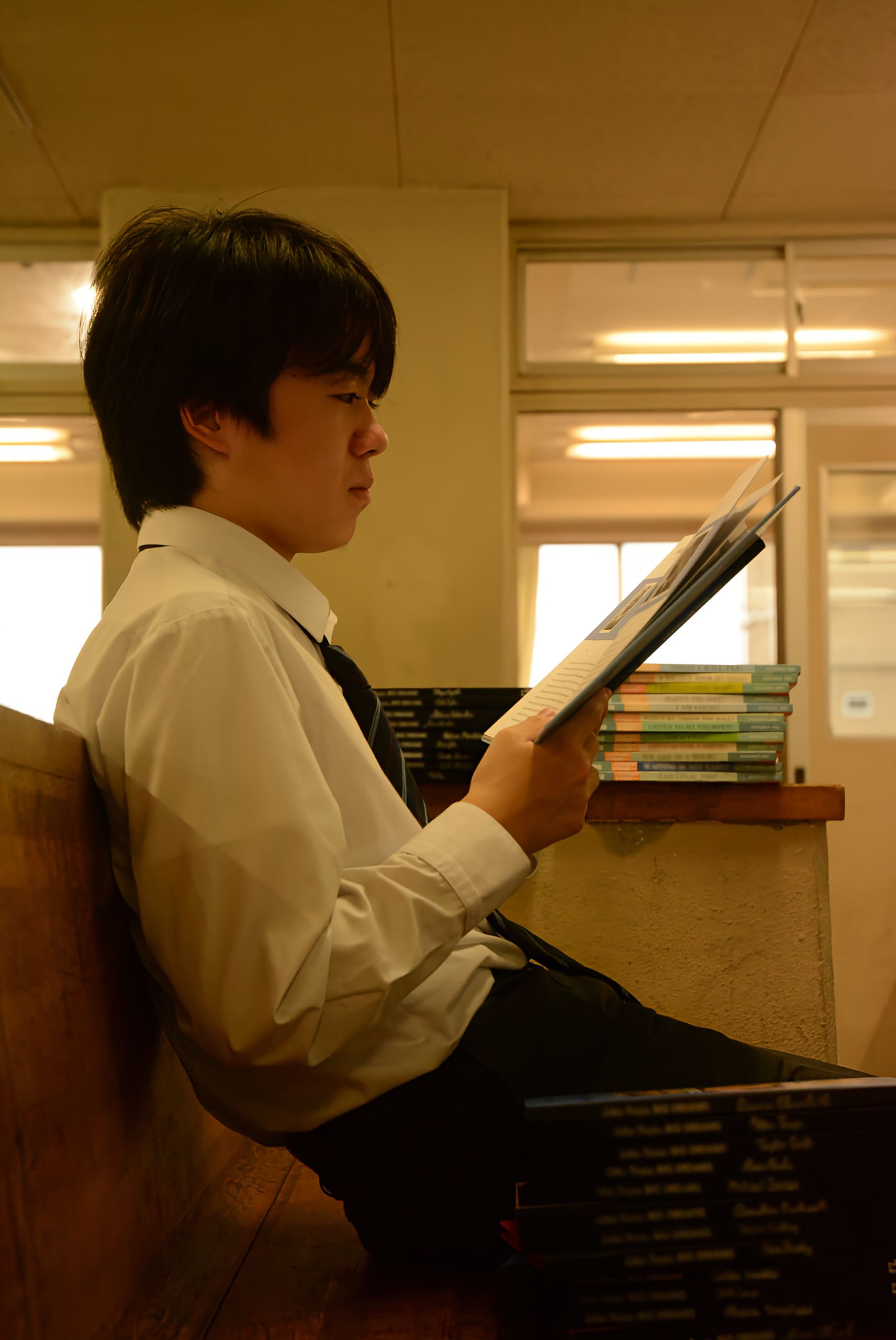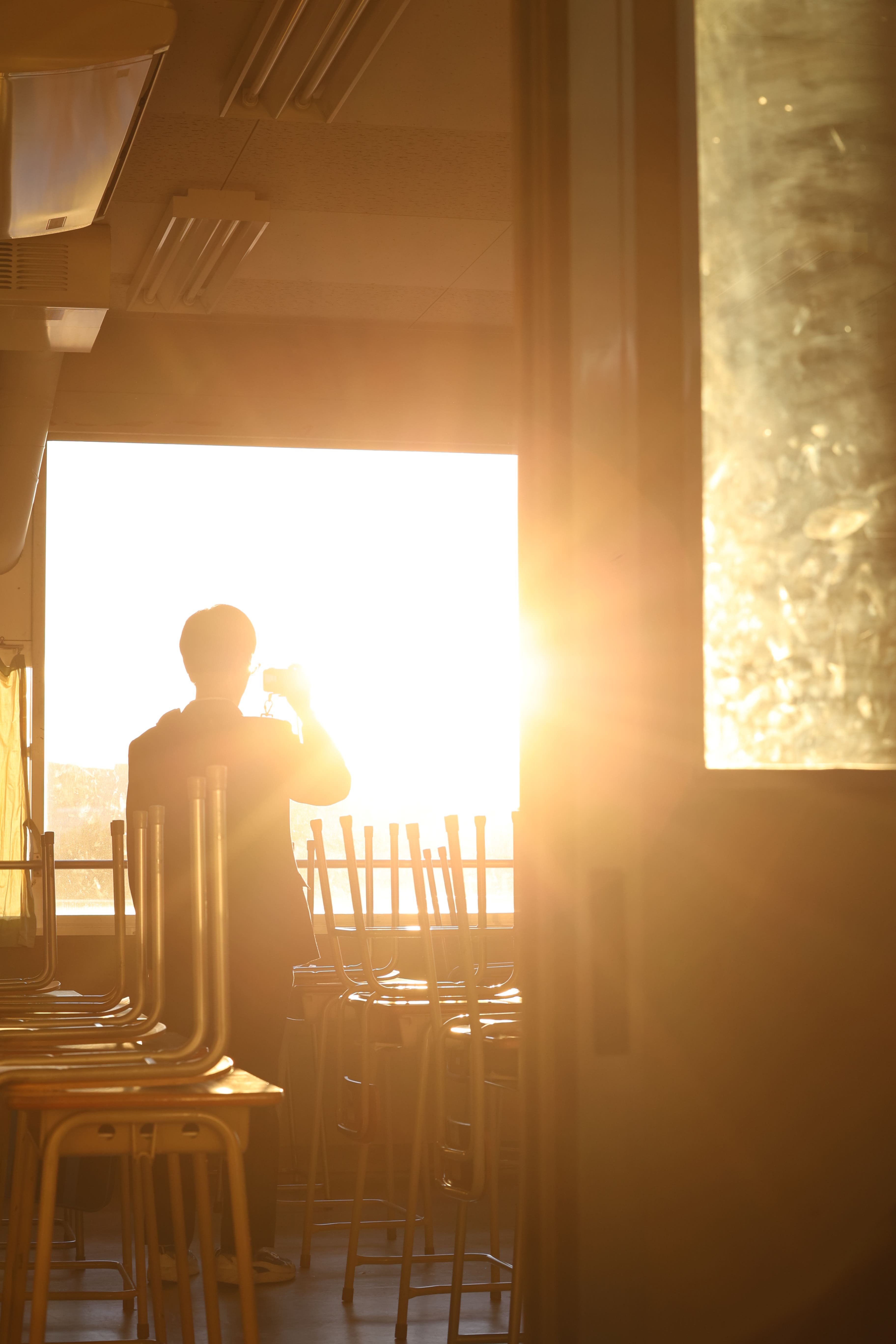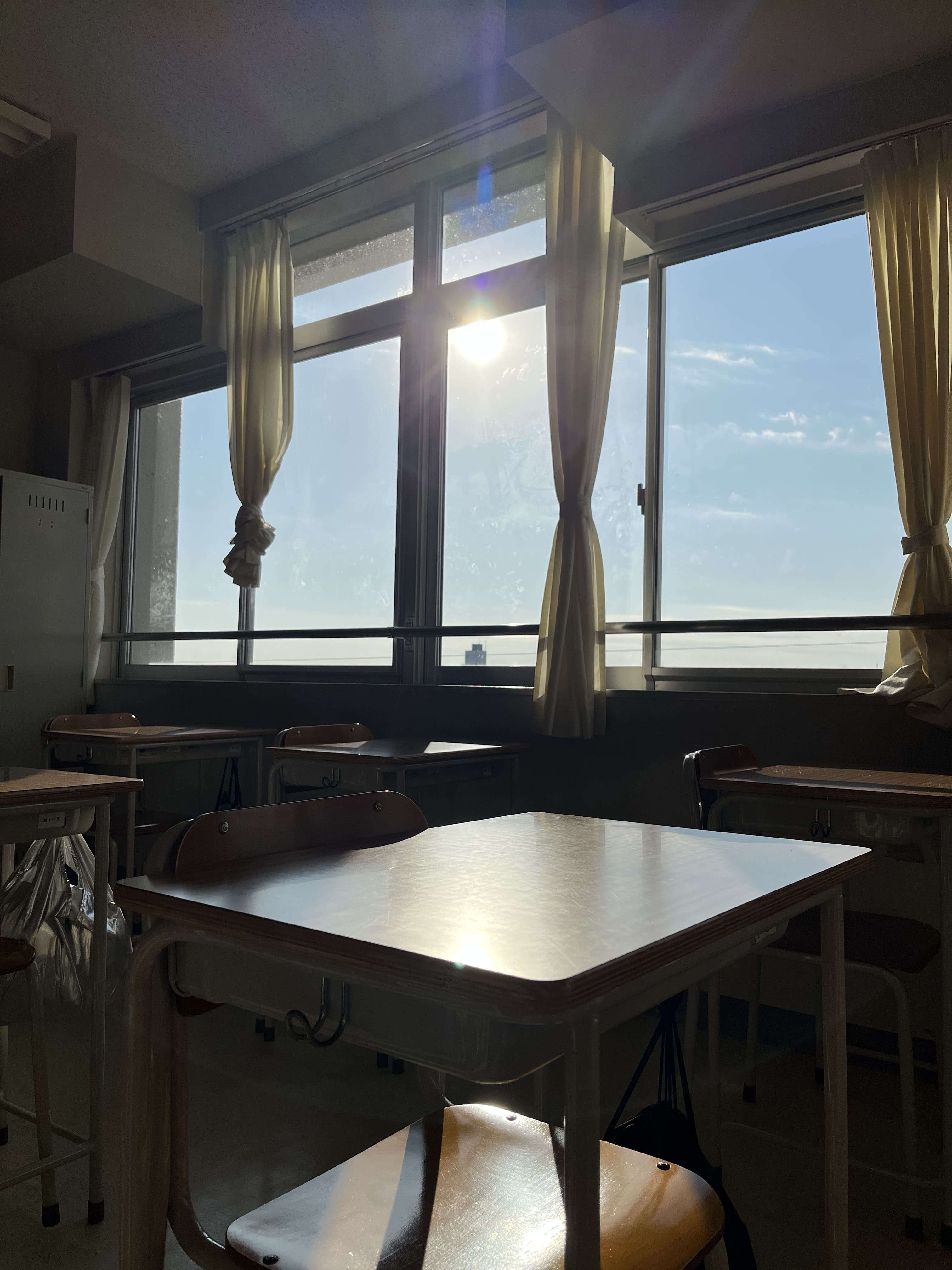 誰もいない教室の窓から反射した光が綺麗だったので思わず撮った写真です。
