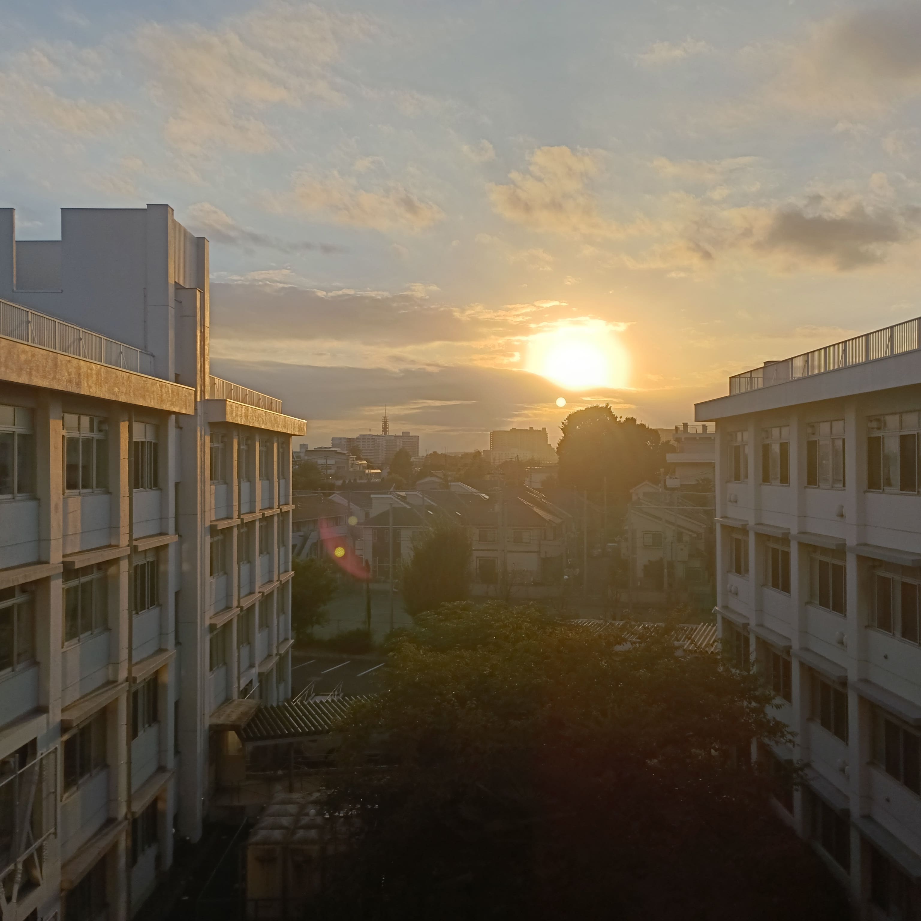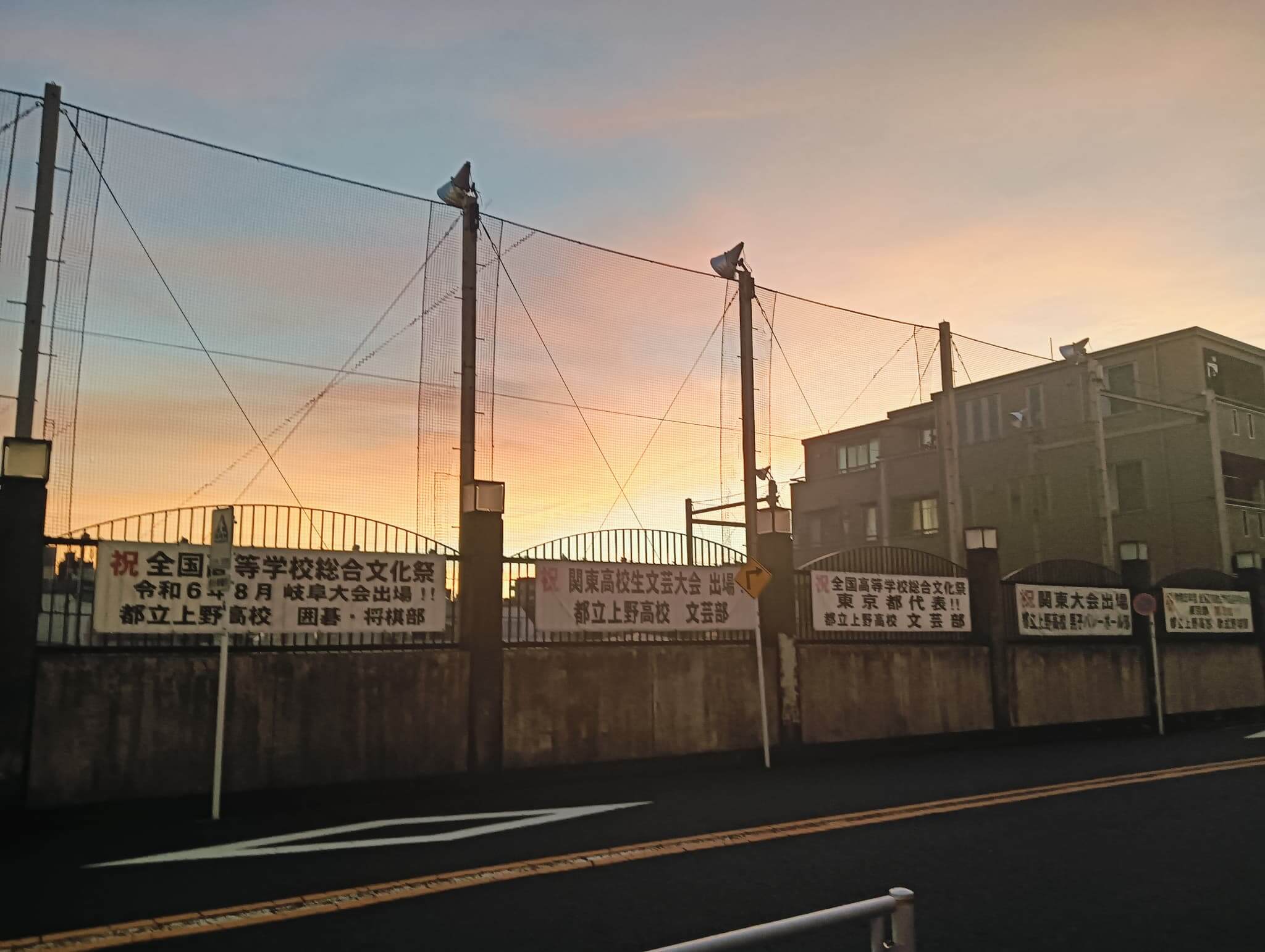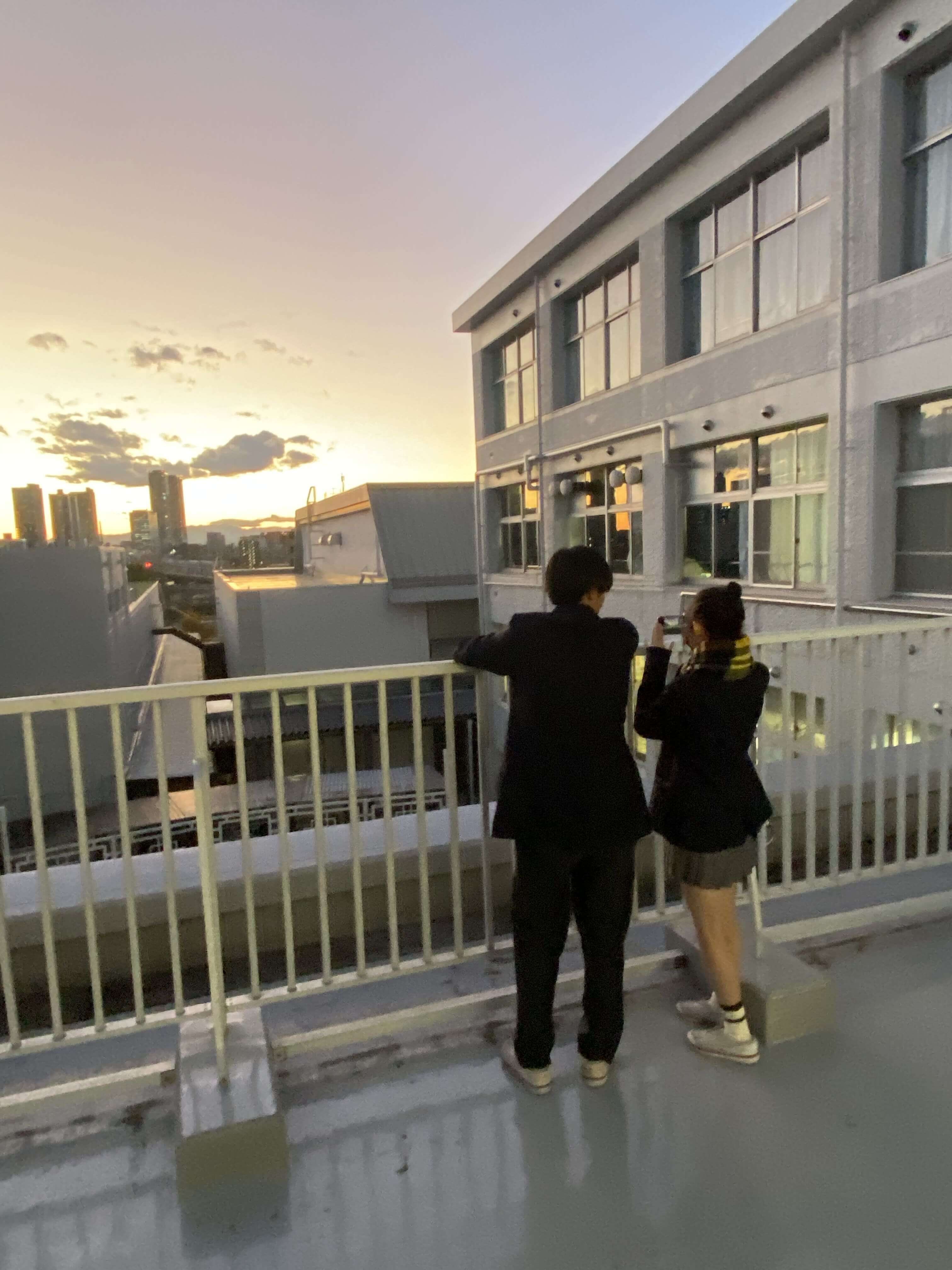 田園調布高校のベランダから見える美しい夕焼けをバックに撮った写真