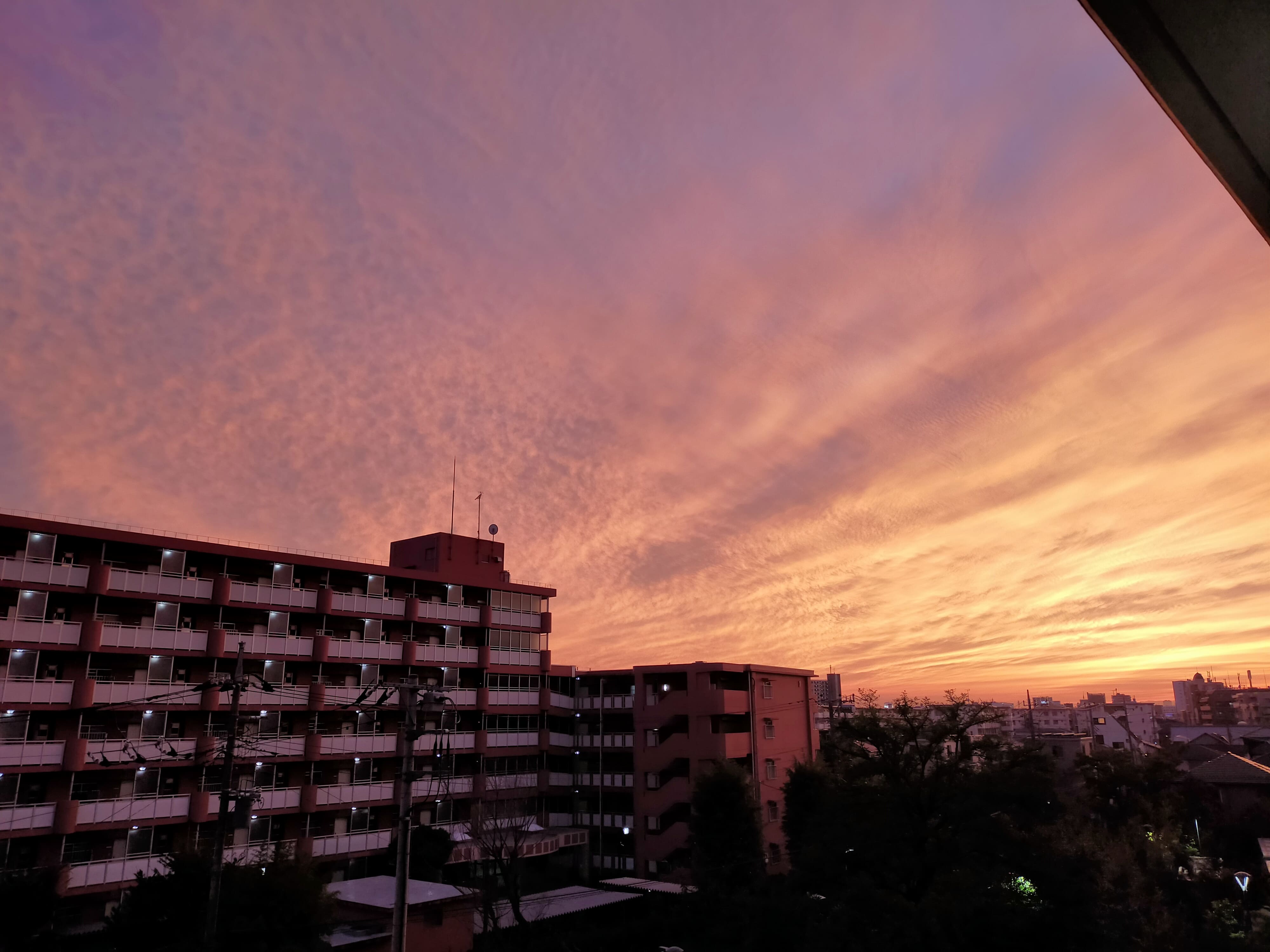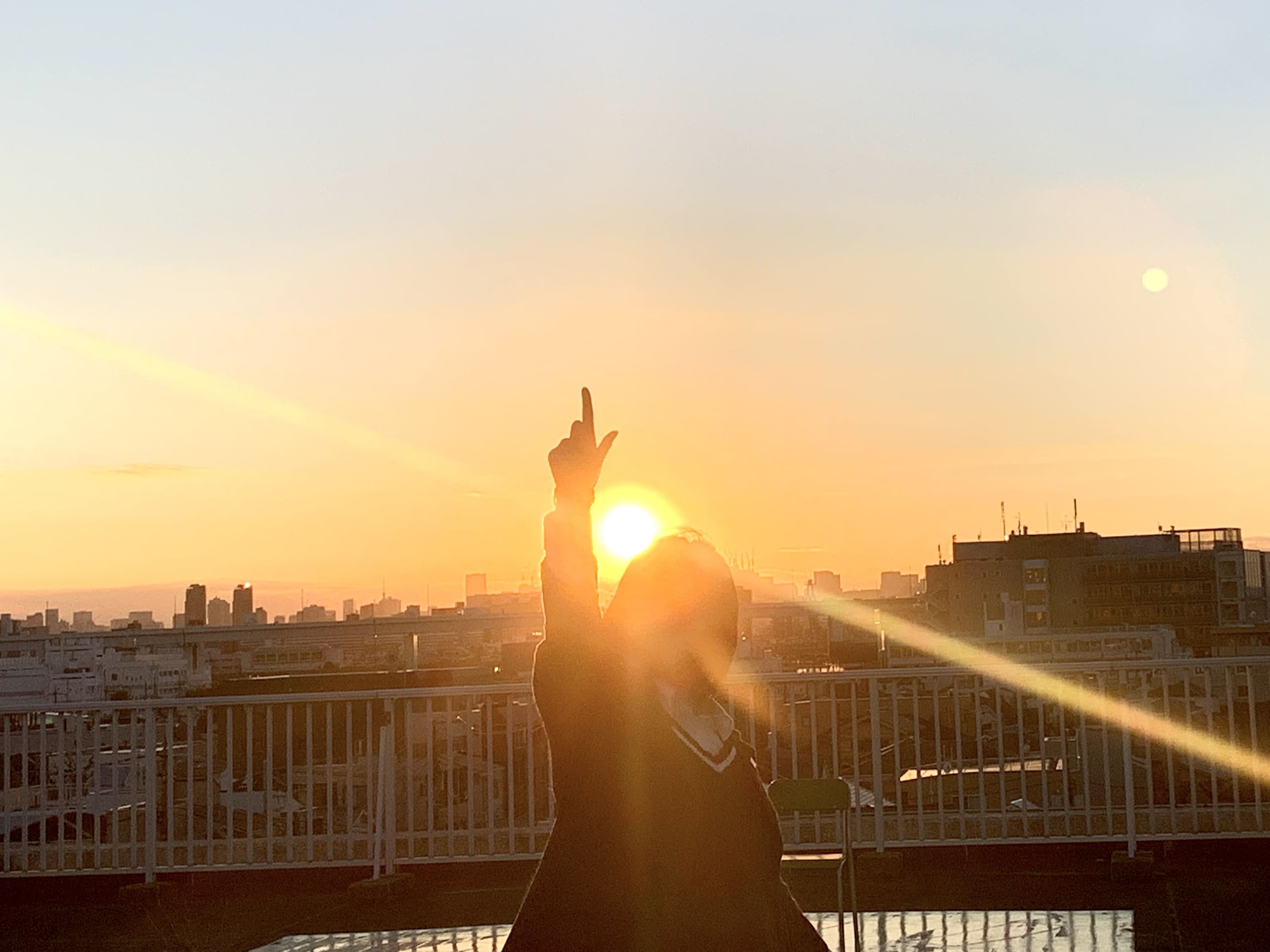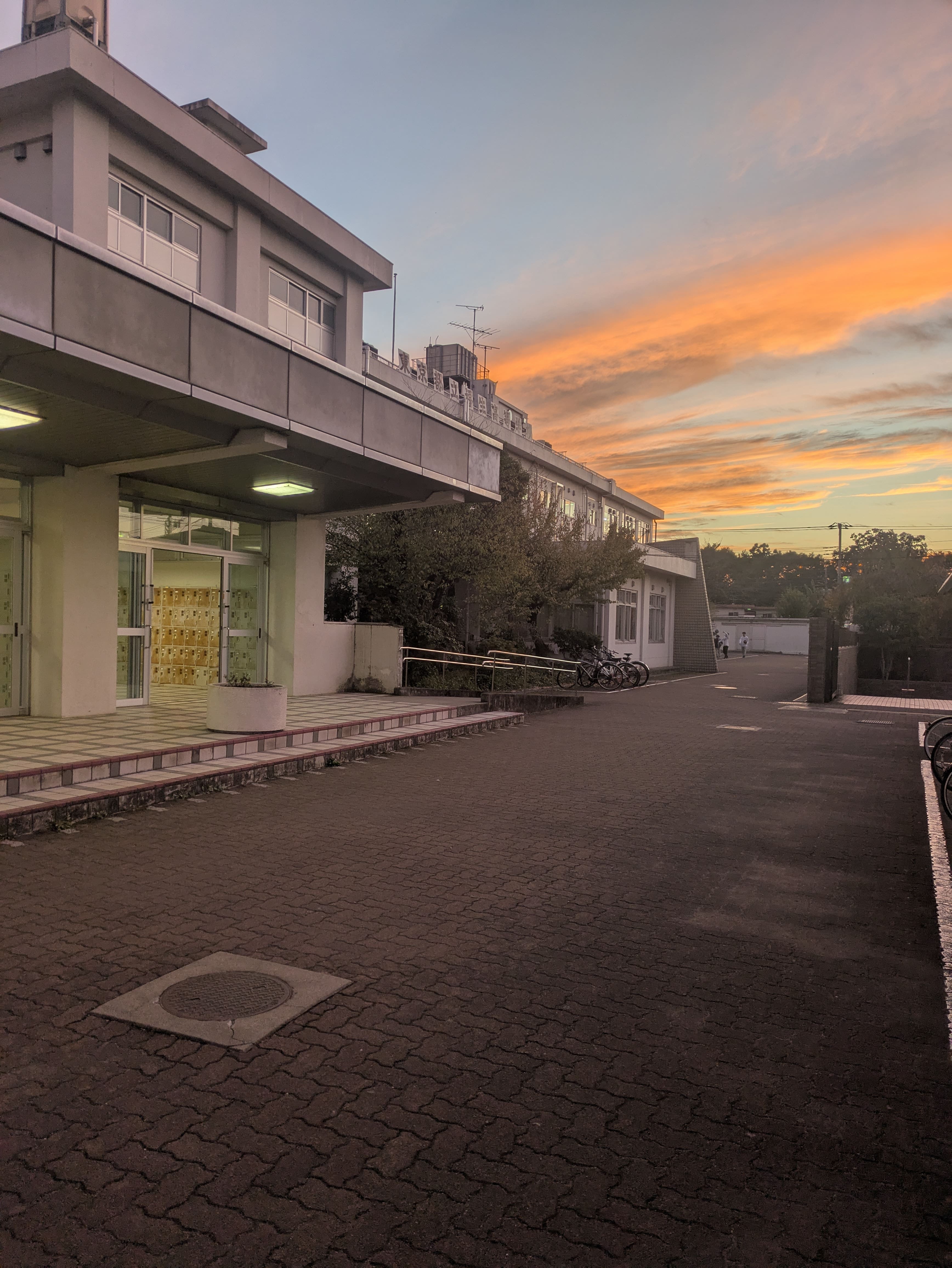 田園調布高校のベランダから見える美しい夕焼けをバックに撮った写真