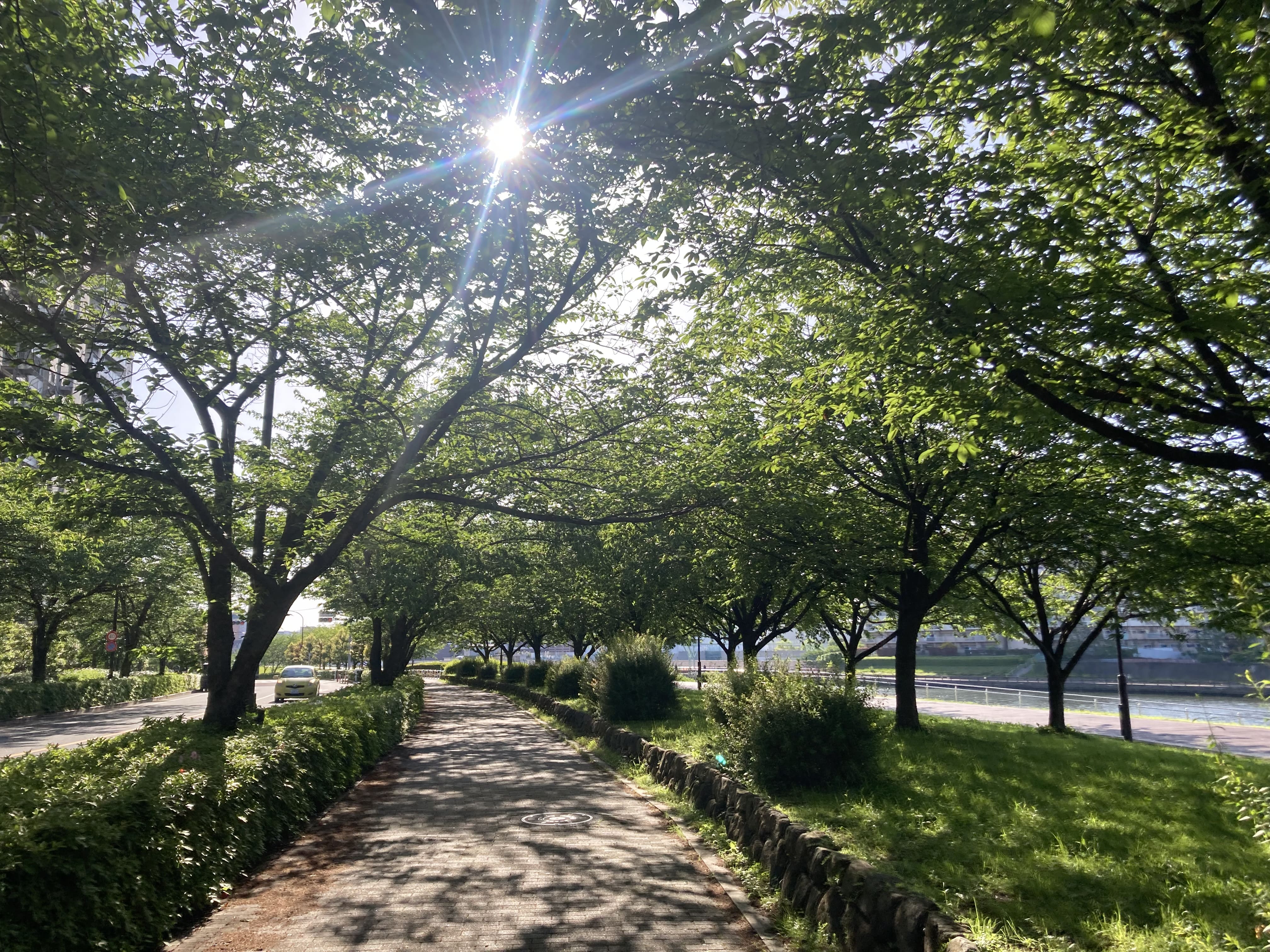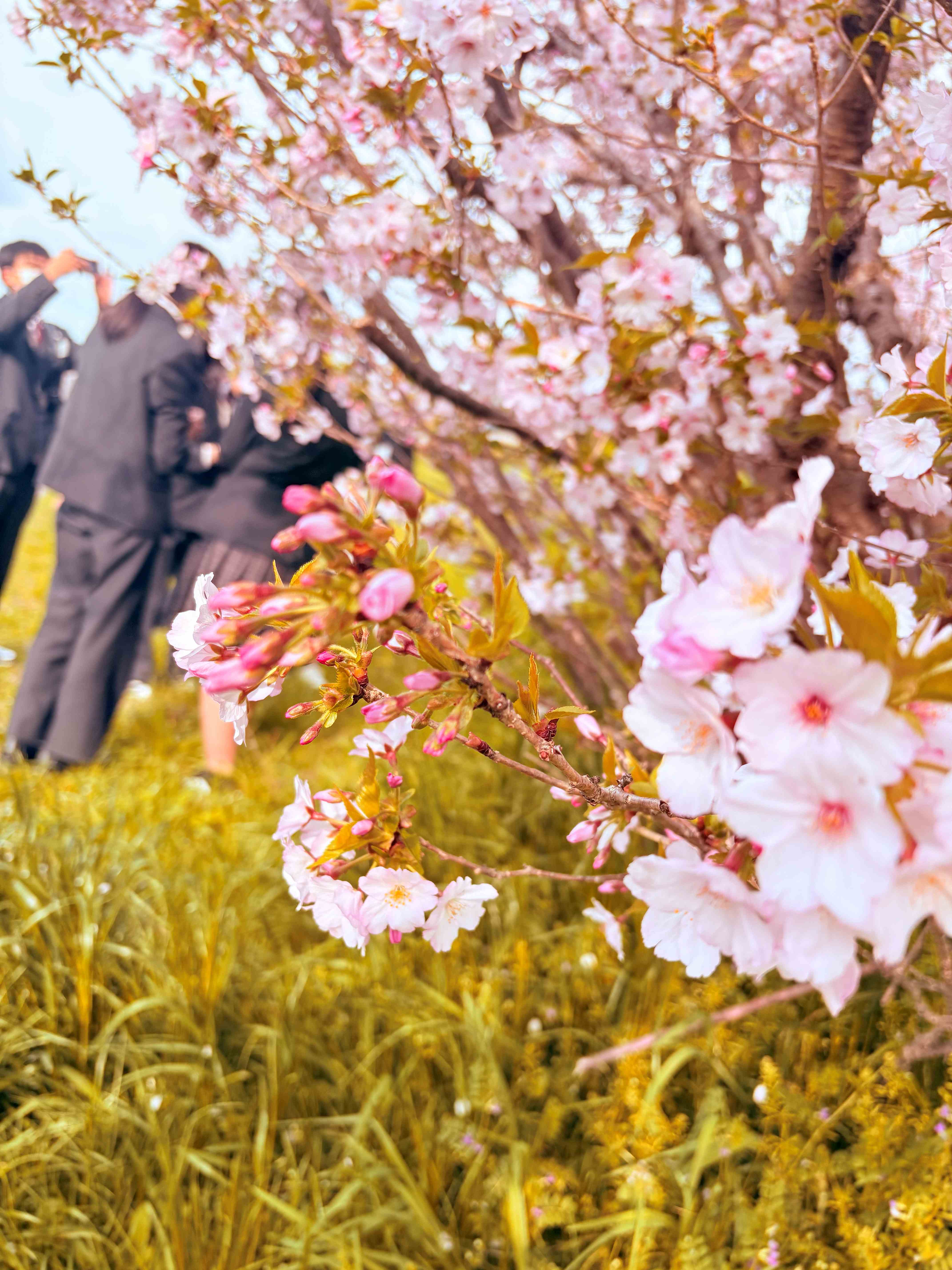 学校赤道にある桜並木が素敵だったのでそこで撮りました。
