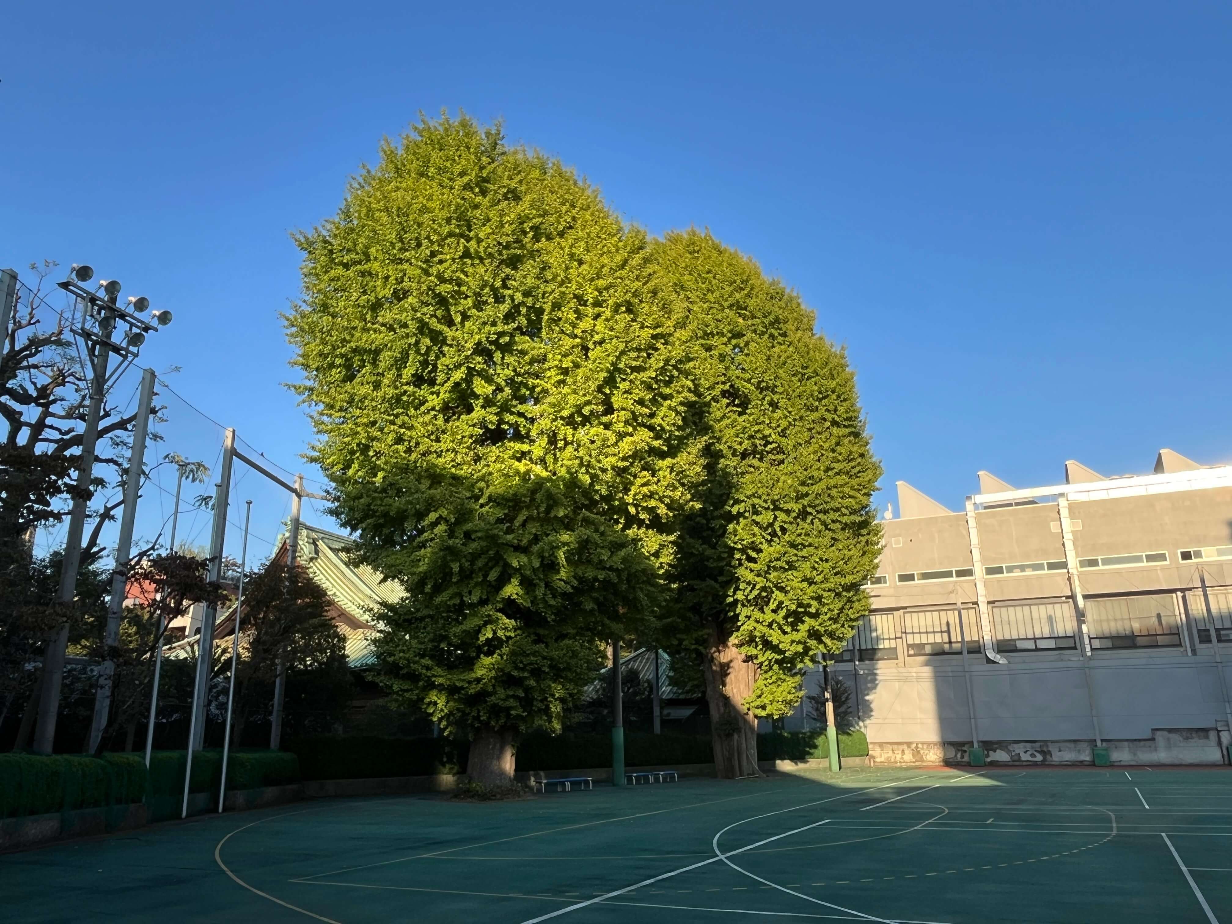 高校の歴史をもつ2本のいちょうの木を撮りました。