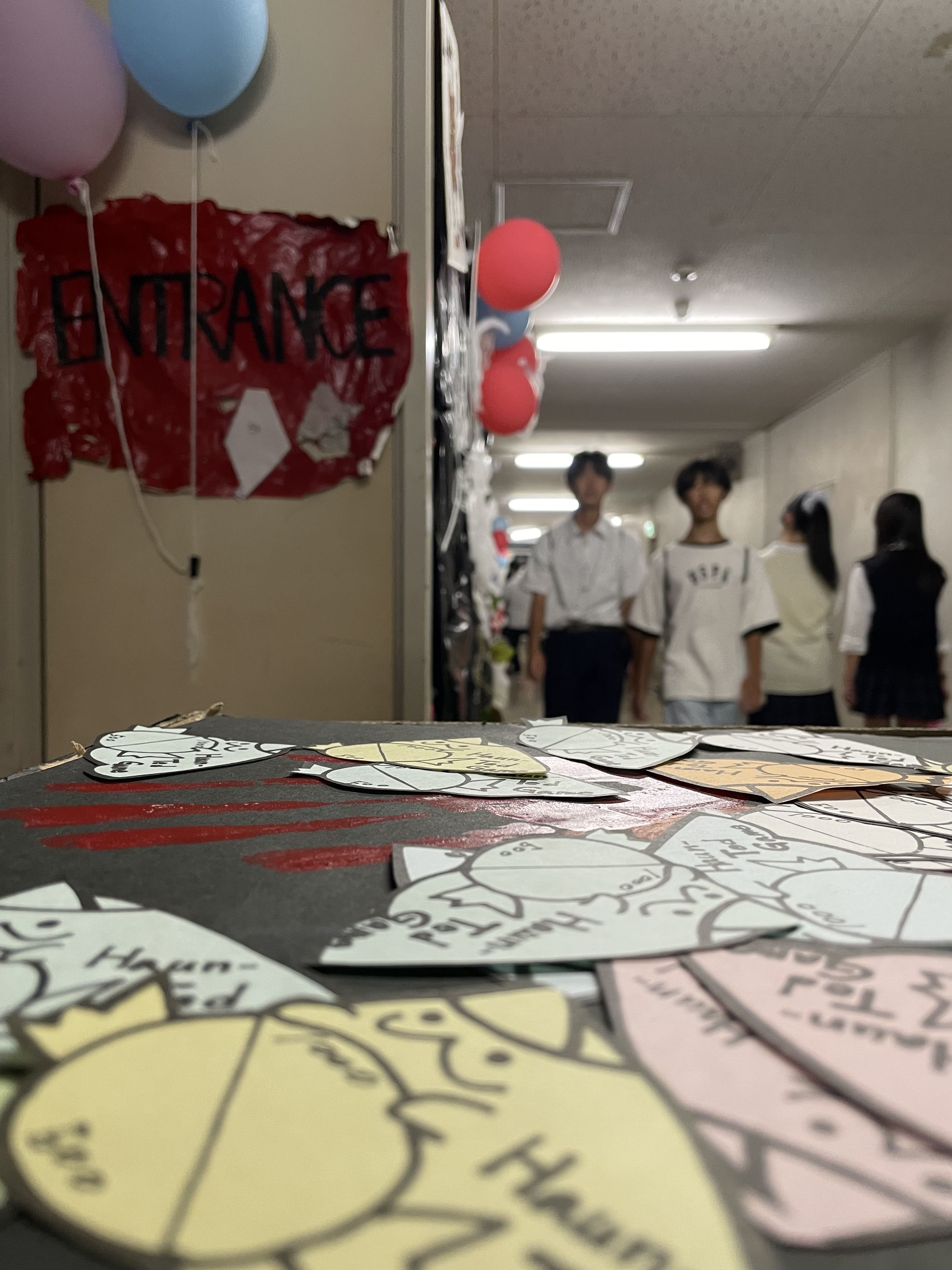 今年の9月上旬に行われた東叡祭での写真です。普段の学校とは違い、装飾された廊下が多くの人で賑わっている様子を撮りました。