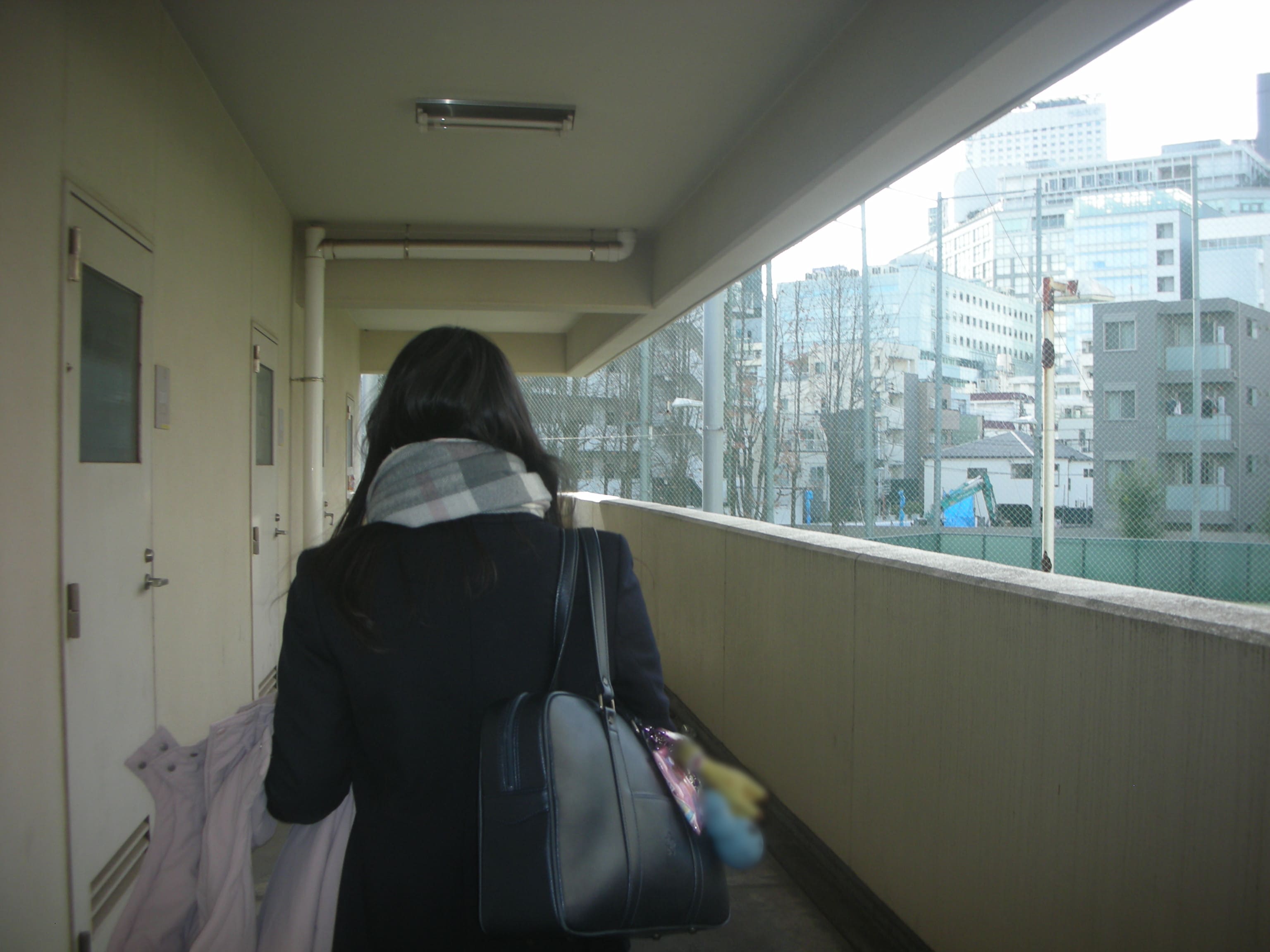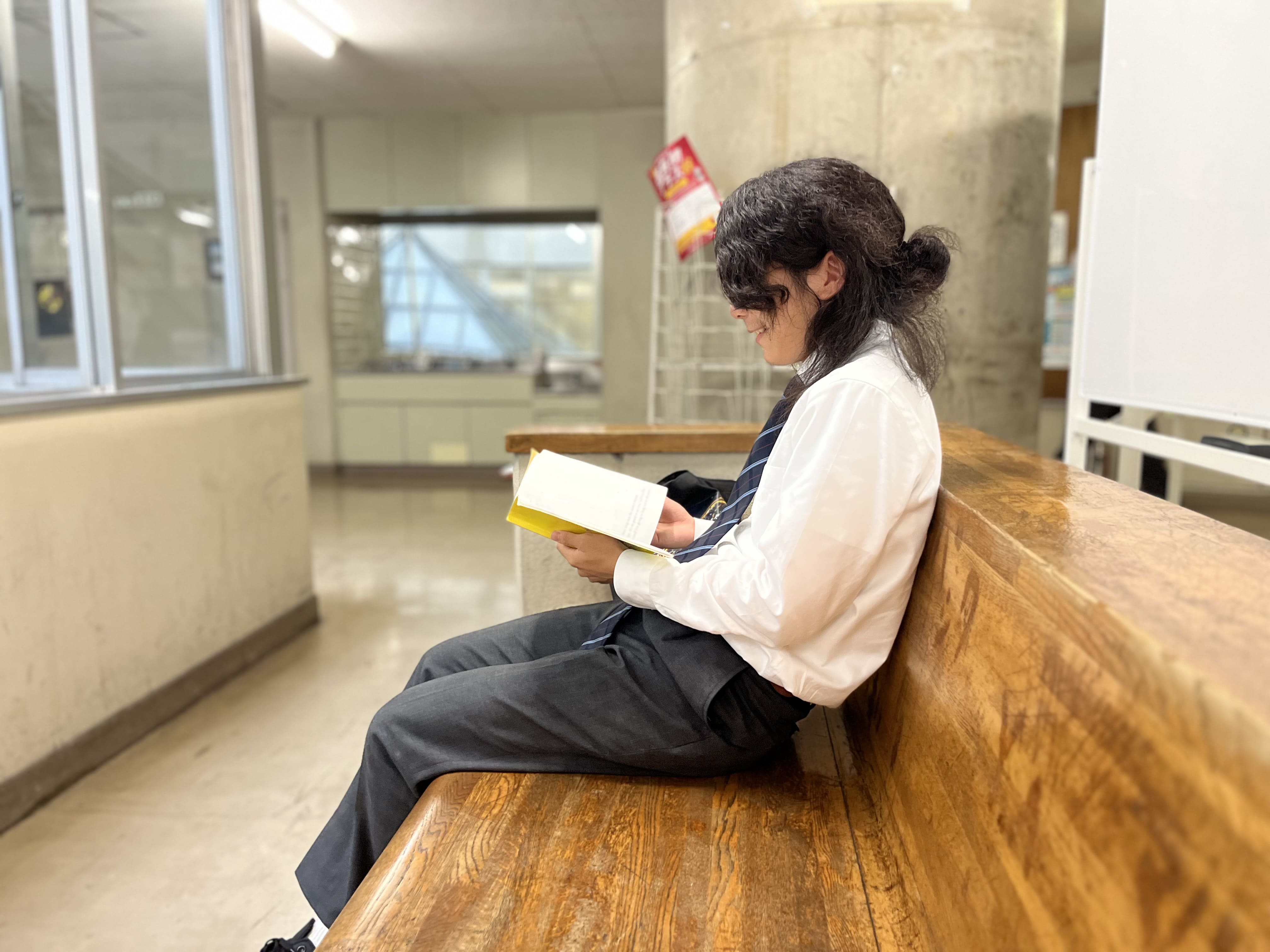 テスト期間中に学校のベランダで息抜きをしている様子