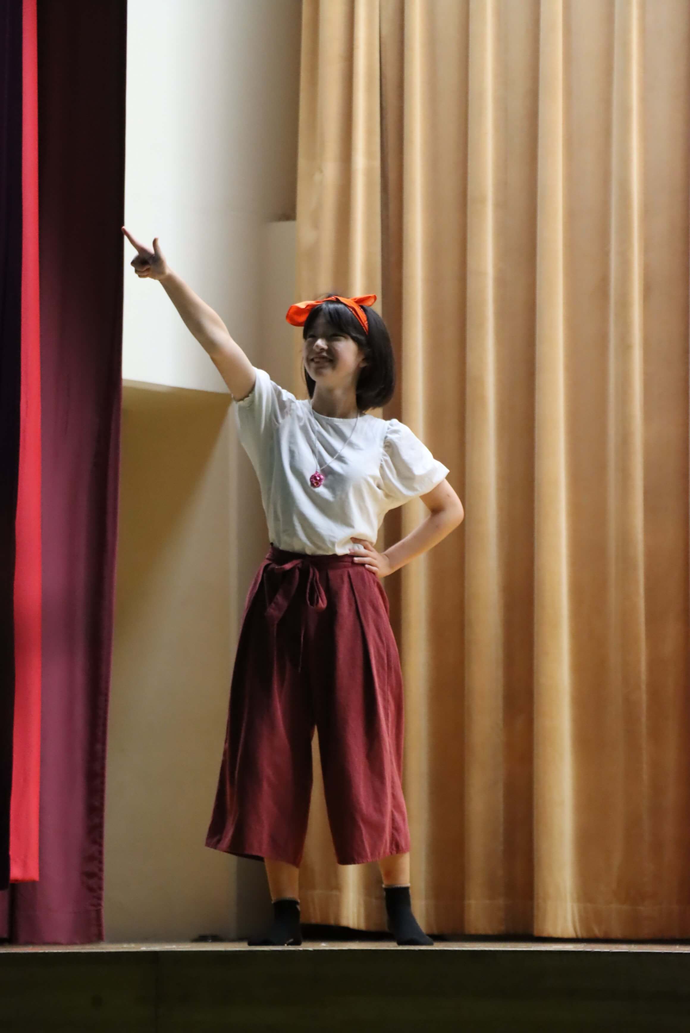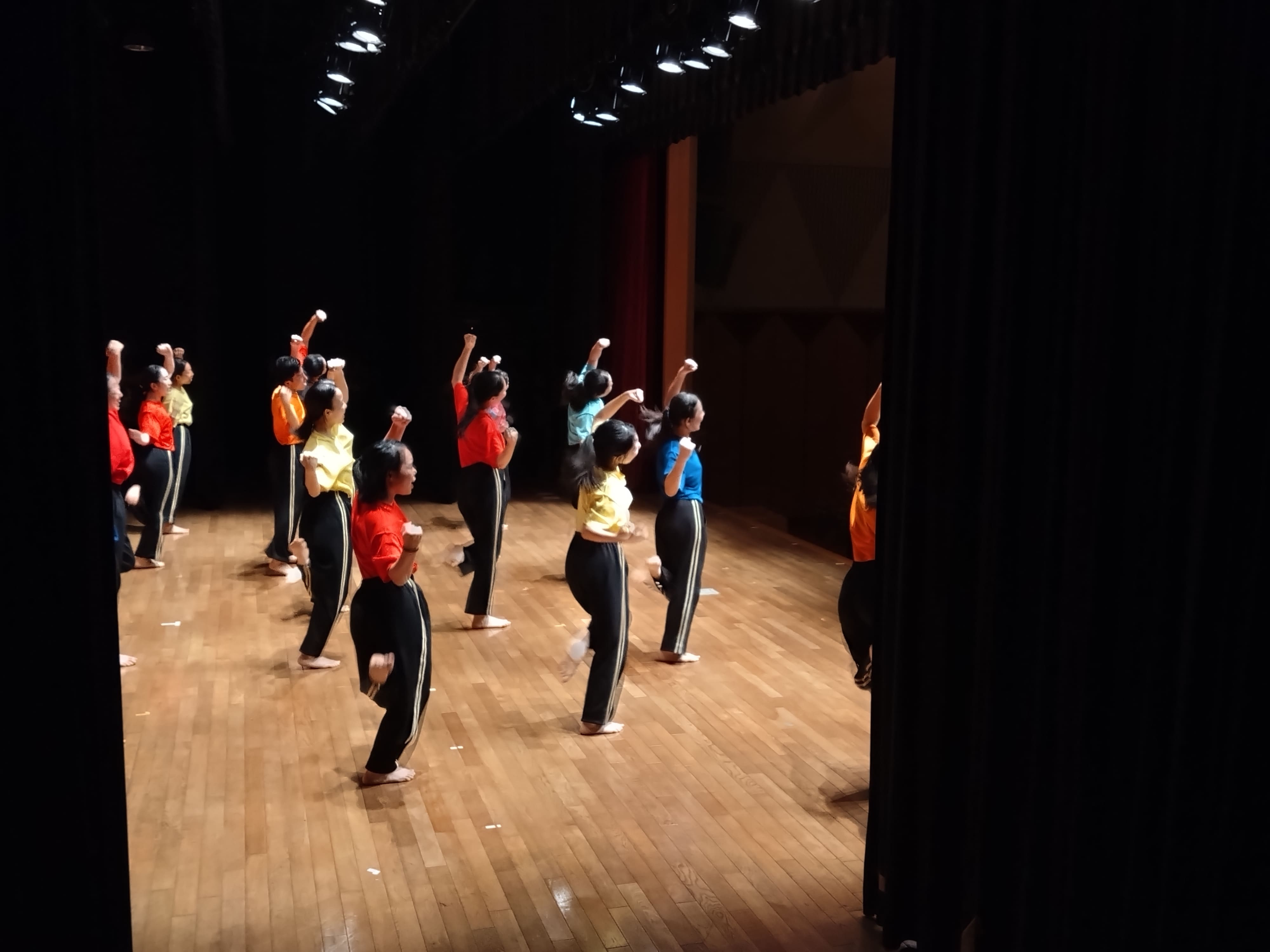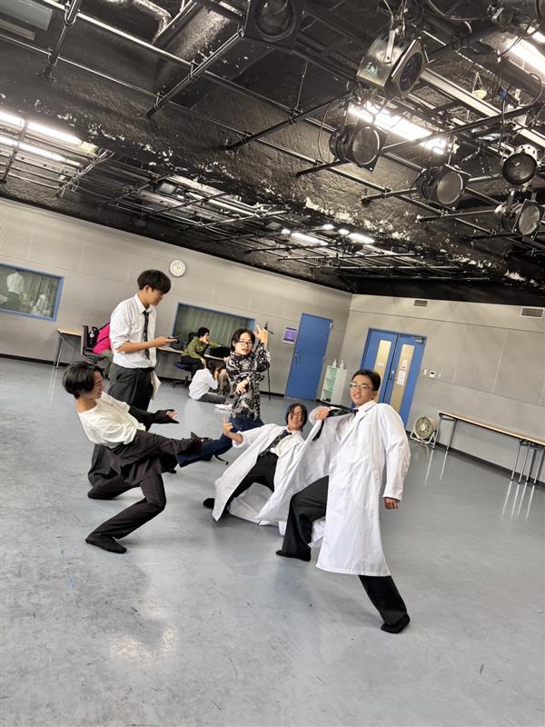 文化祭のステージで、演劇部が笑顔いっぱいのダンスを披露した瞬間です。全身で表現する喜びと、仲間と作り上げてきた時間の輝きが伝わってきます。