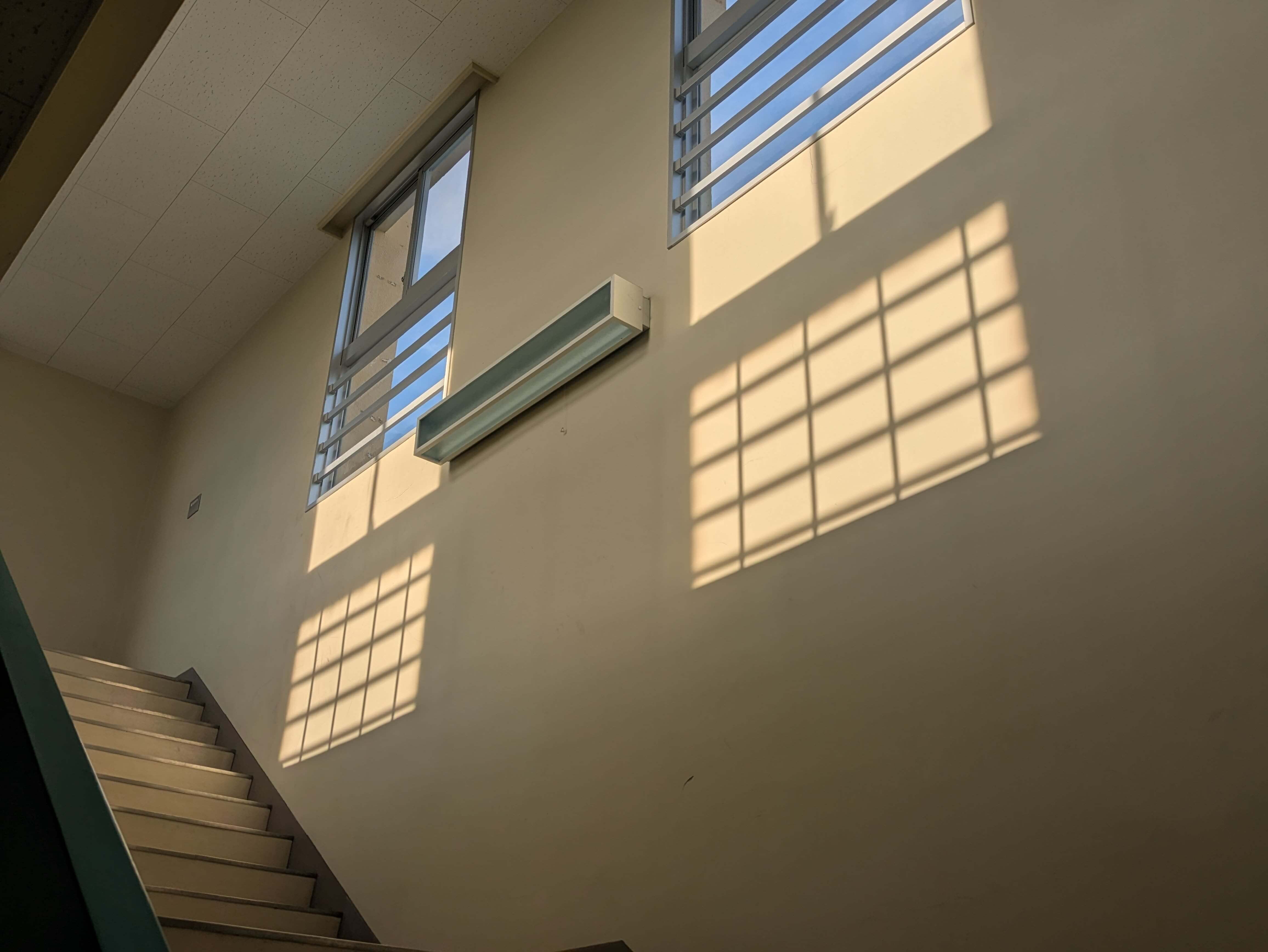 放課後の時間帯に学校で見る階段や窓枠の影が好きなので今回載せました。