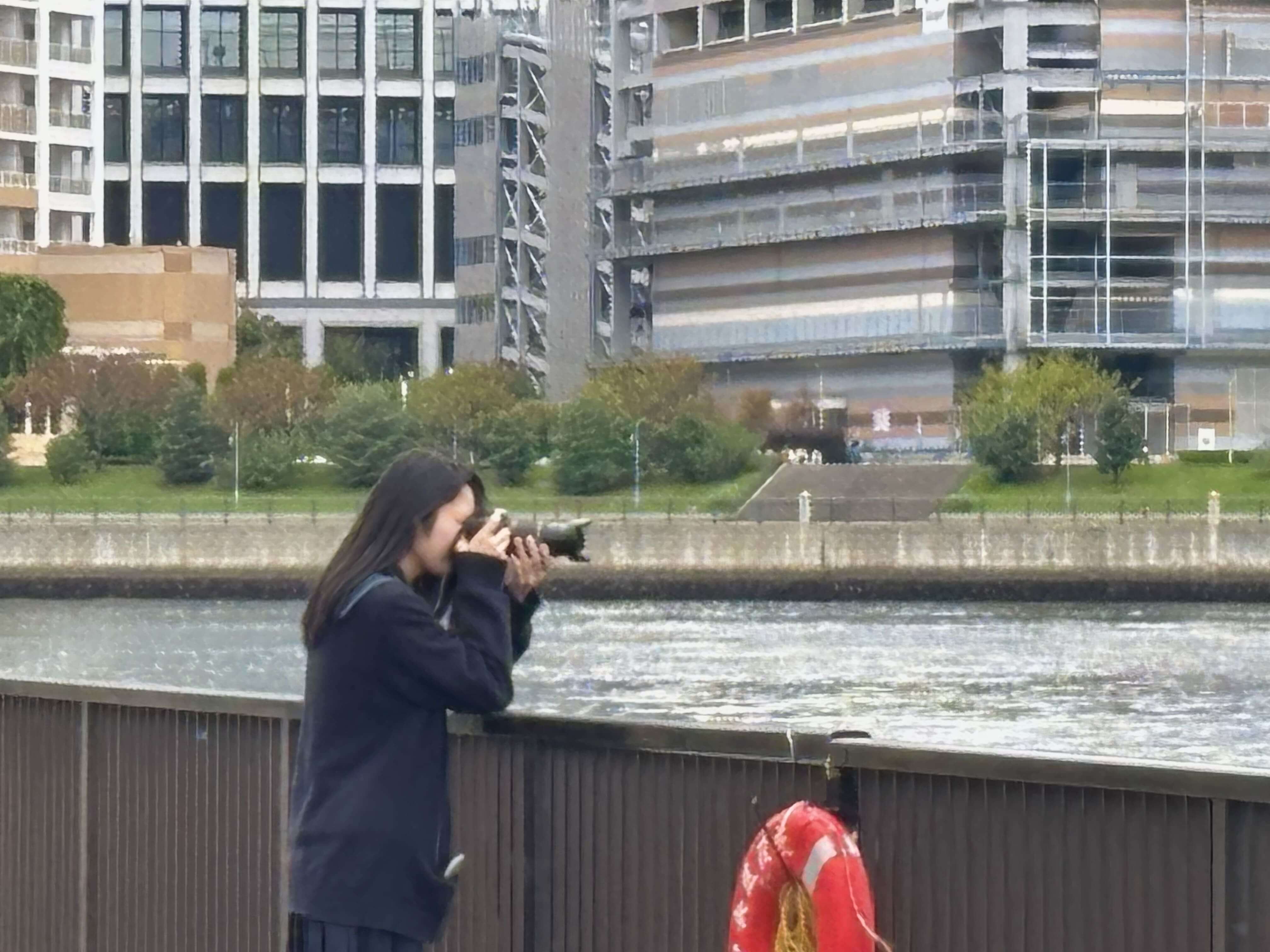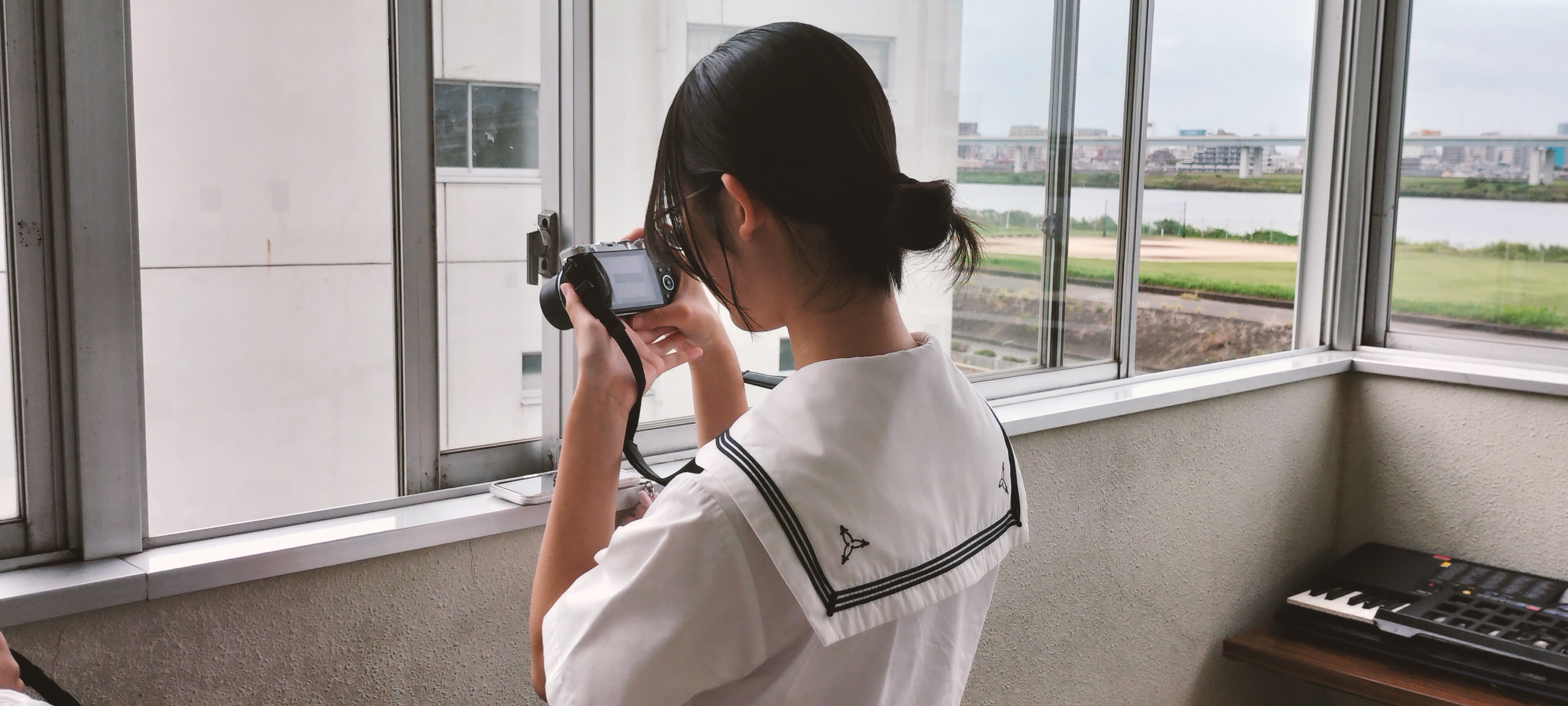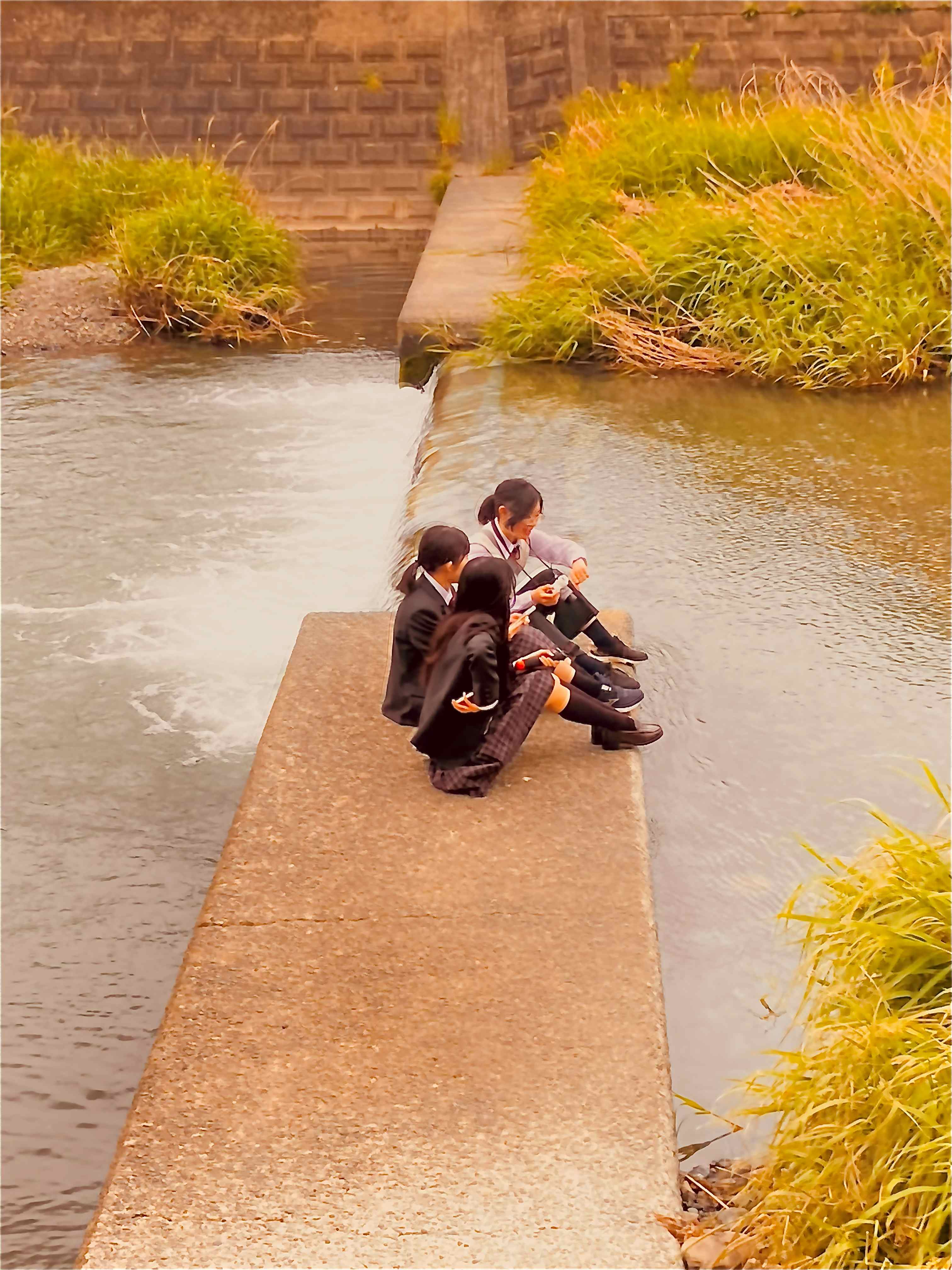 放課後、フィルムカメラで高校のすぐ近くにある川を眺める友達を撮りました。川を見てると穏やかな気分になり和んでいたのでこの題名にしました。