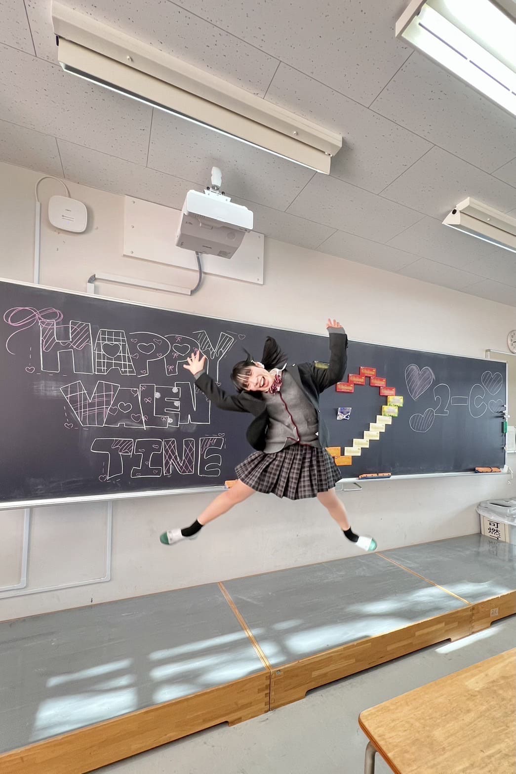 黒板に差した日の光が綺麗だったので友達と共に撮りました。