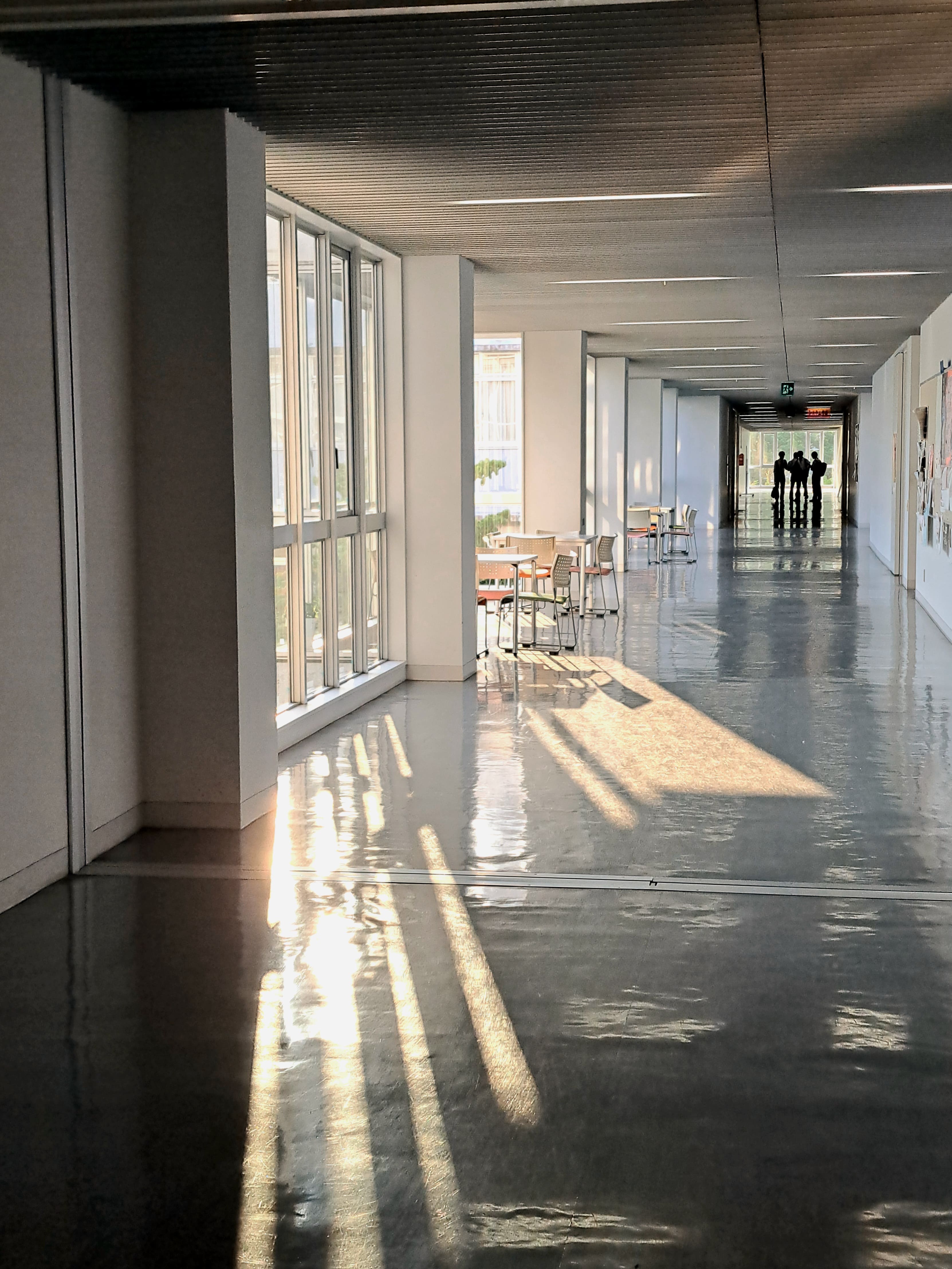 ガラス張りの校舎は外の様子を見ることが出来る。16:00は、帰る人もいるし帰る人が外を見たら、部活をする人もいる、その様子を表現した写真です。