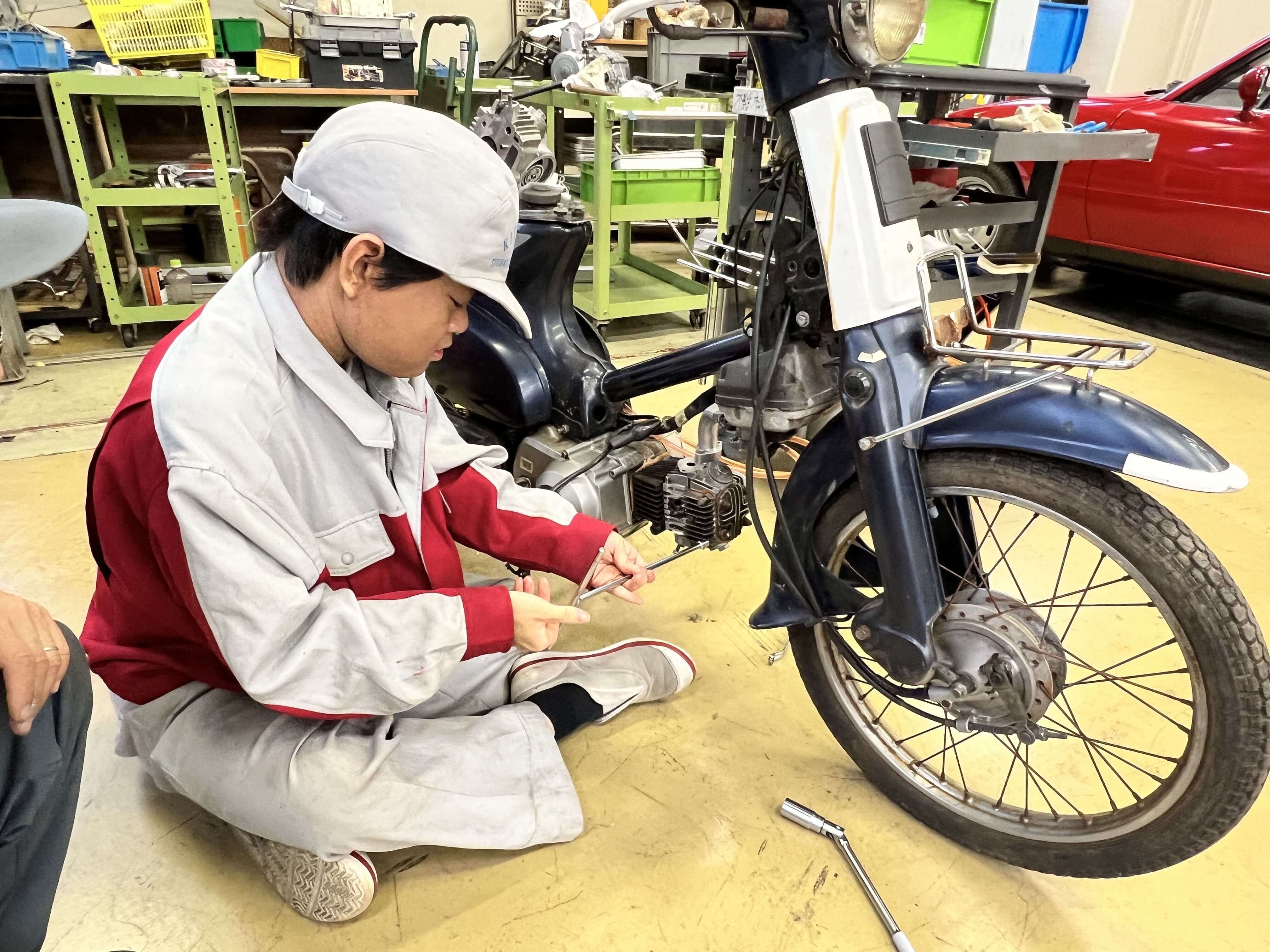 機械工作部と言う部活でエンジンの整備を放課後にしている写真です。