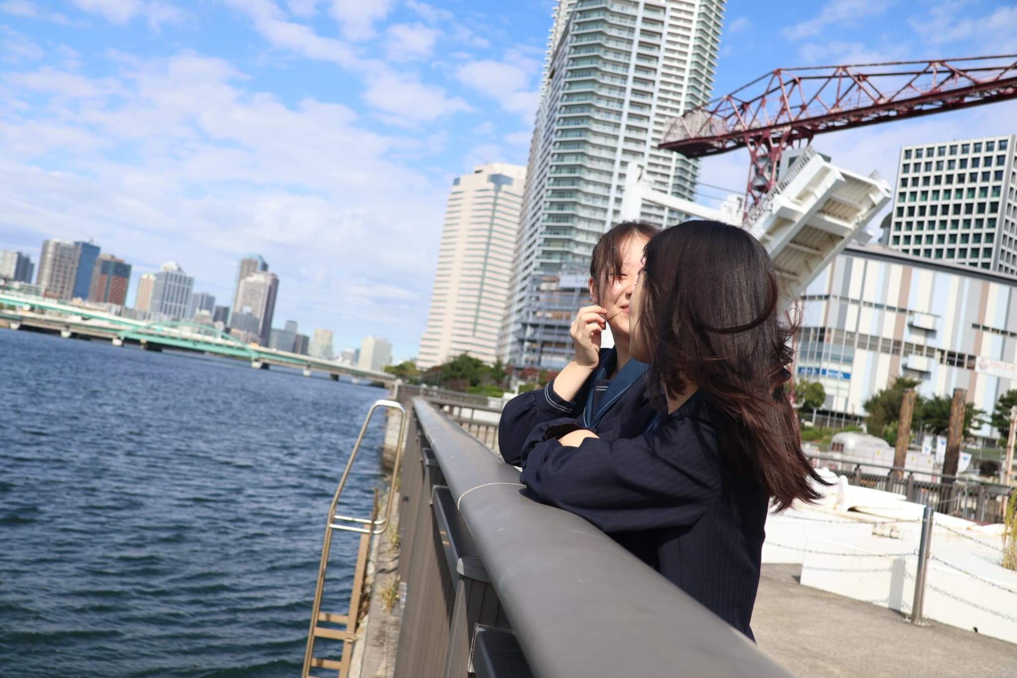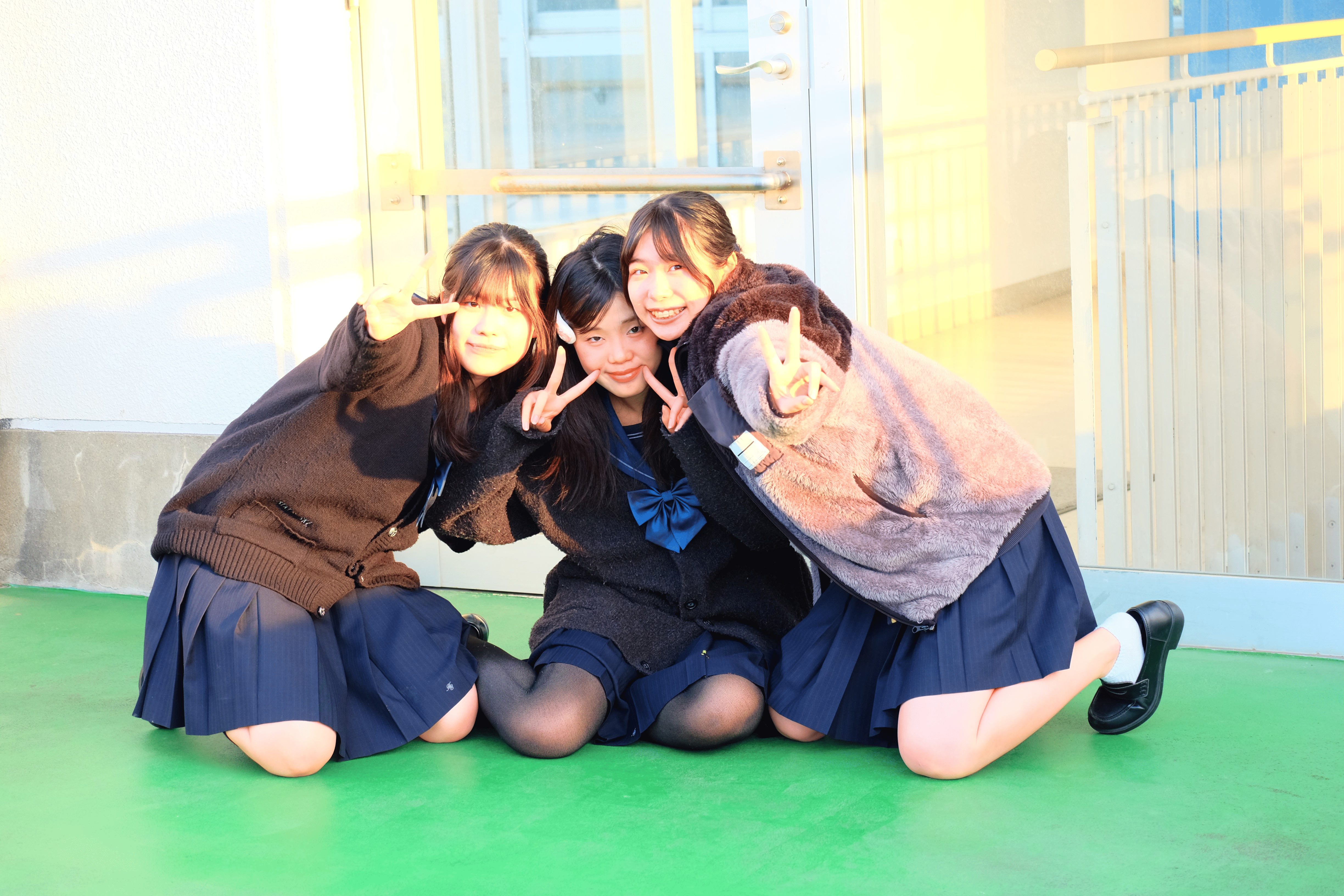 晴海総合の生徒や私のお友達明るくフレンドリーでとっても仲良しなところが魅力なのでそれが伝わる写真を撮りました。