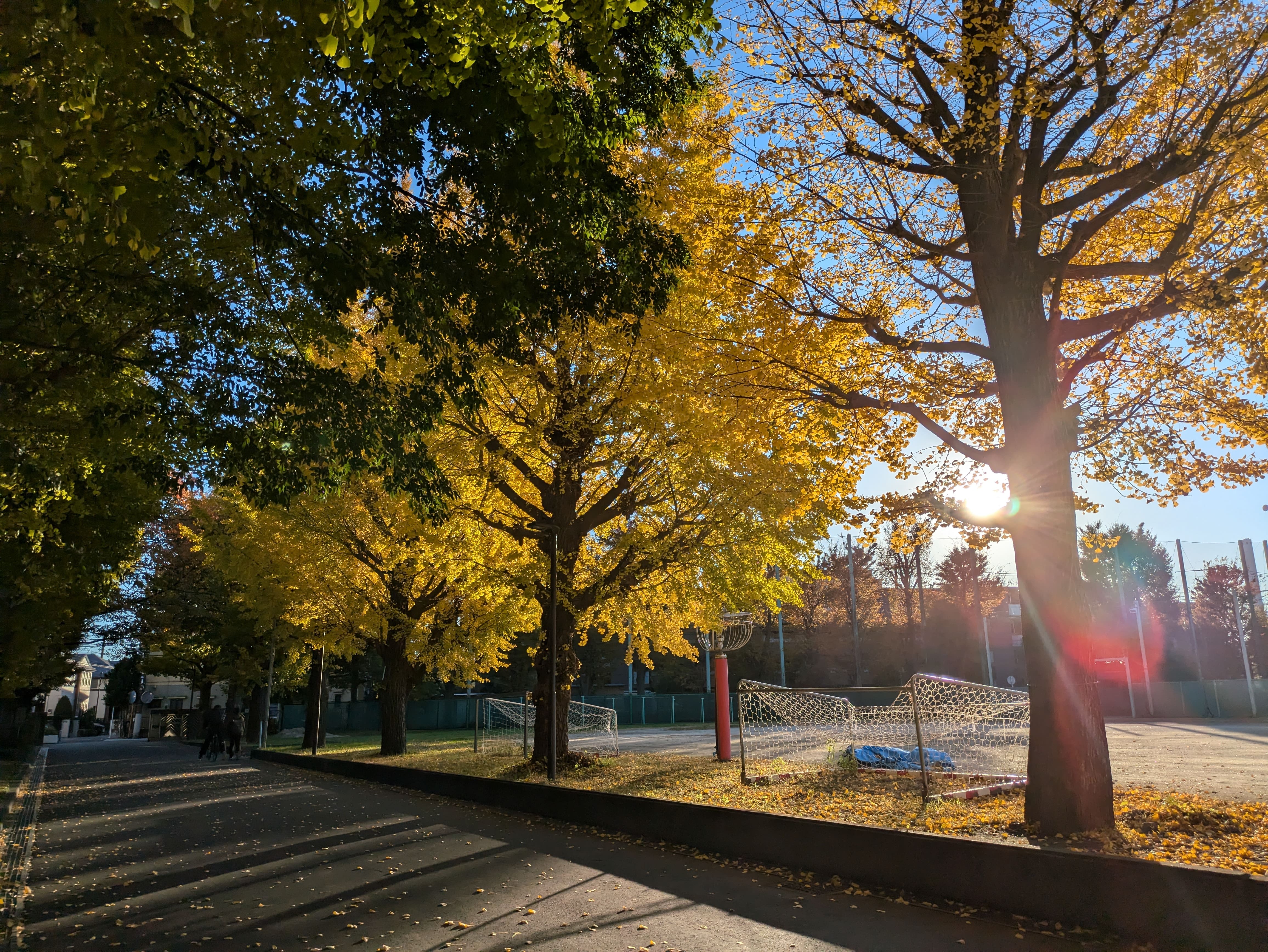 学校から帰る時に黄葉のイチョウ並木を撮りました
